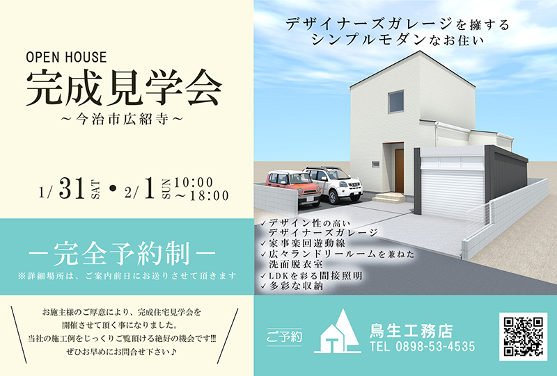 予約・詳細は、鳥生工務店のHPをご確認ください。