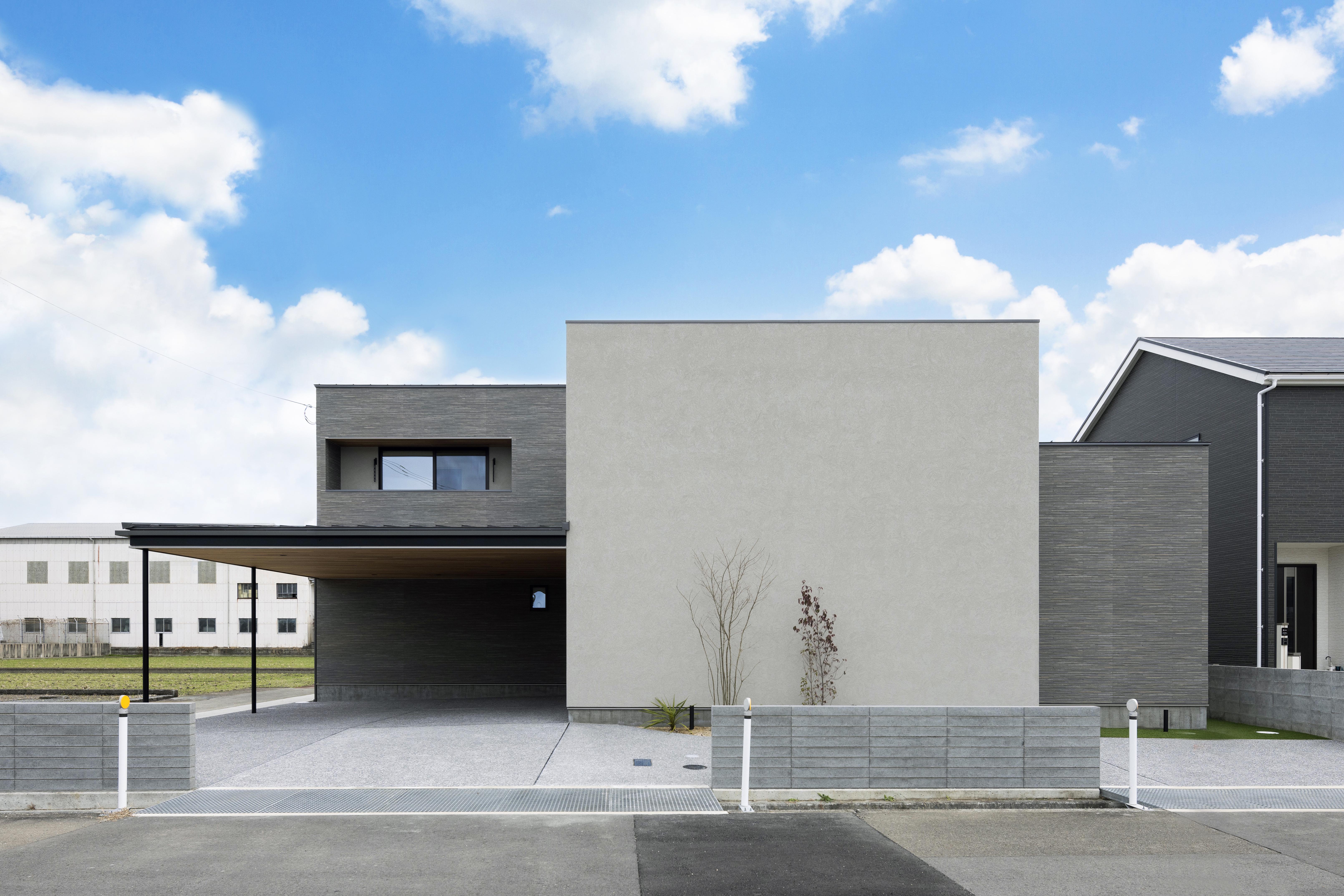 外観はサイディングと塗り壁で質感の変化をつけたスタイリッシュなものに。シンプルなキューブの組み合わせで変化を持たせました。