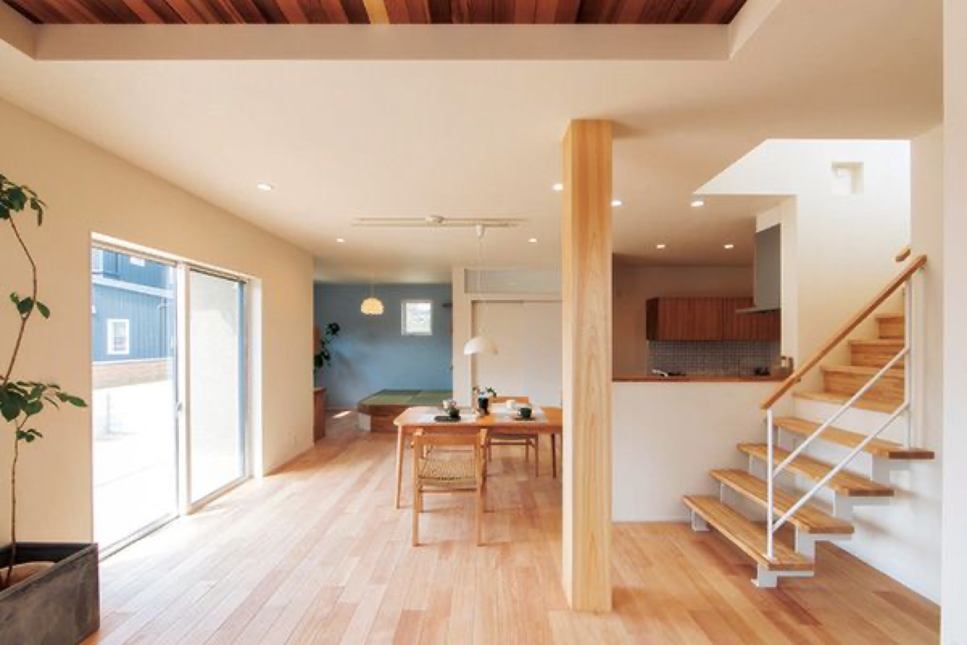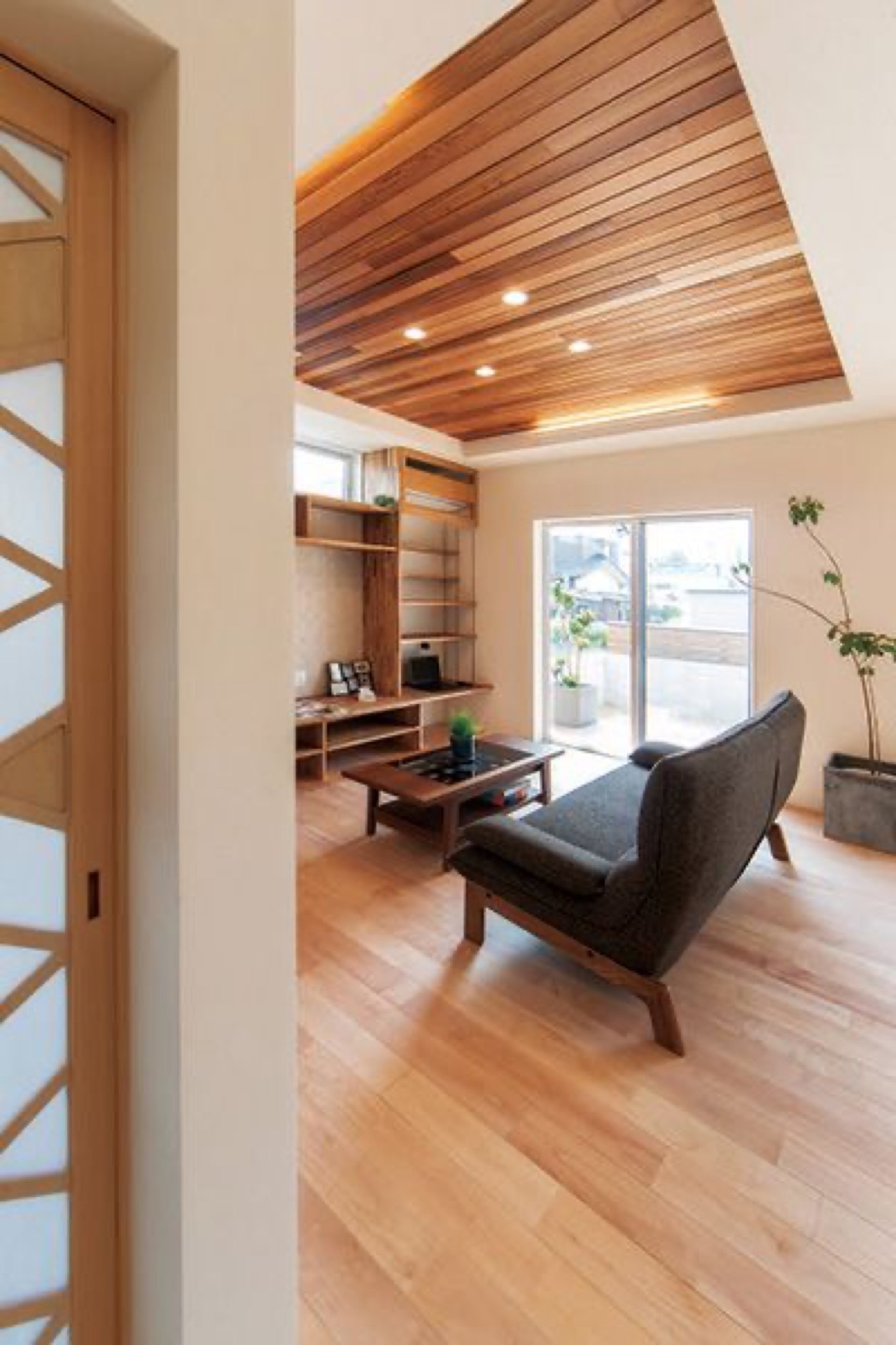 奥さまの家事ストレスを少しでも減らしたい…。そんな思いのもとに、土間収納から直接キッチンに行く裏動線をつくり、来客は表動線を通ってプライベートゾーンを通ることなく、和室に導くことができる間取りを計画。家族が最も長い時間を過ごすLDKはには、小上がりの畳コーナーも併設されており、そこにはスタディコーナーも設けた。ワイズホームの特徴ともいえる木製建具は、パートナー業者である建具屋とともにつくったオリジナル。ランダムにはめ込んだパネルがアクセントになっている。収納や家具も造作したものがほとんど。自分たちらしい暮らしを生み出すポイントとなっている。オリジナリティ溢れる、その家族のための家づくりの肝となっているのが、事前にお客さまに書いていただく要望。最大100のやりたいことを書いていただき、それを近藤さんが読み解き、プロならではの視点でカタチにしている。