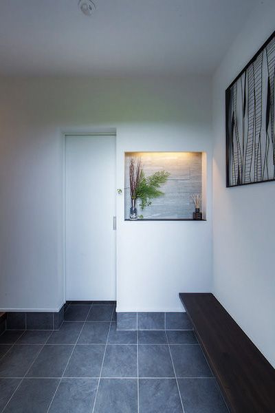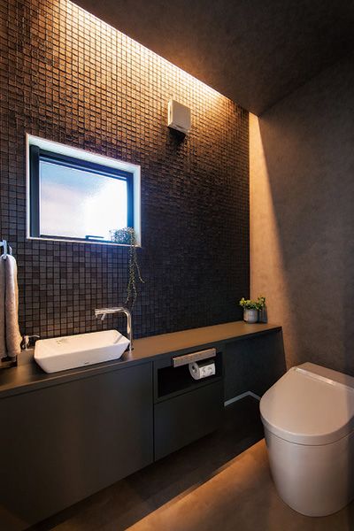 高さの異なるバイカラーの2棟がウォールナット調の木部によってつながったファサードが印象的な住まい。その洗練された雰囲気そのままに、邸内もホテルライクなしつらえで上質にコーディネートされています。「タワーマンションのような大人の空間が理想」と話すKご夫妻。その想いを真っ直ぐに受け止めた「ideal (理想的)な家」は、玄関の左右に高さのあるパブリック棟と落ち着いたたたずまいのプライベート棟を振り分け、中庭を包み込むような「コの字型」に居室を配置しました。