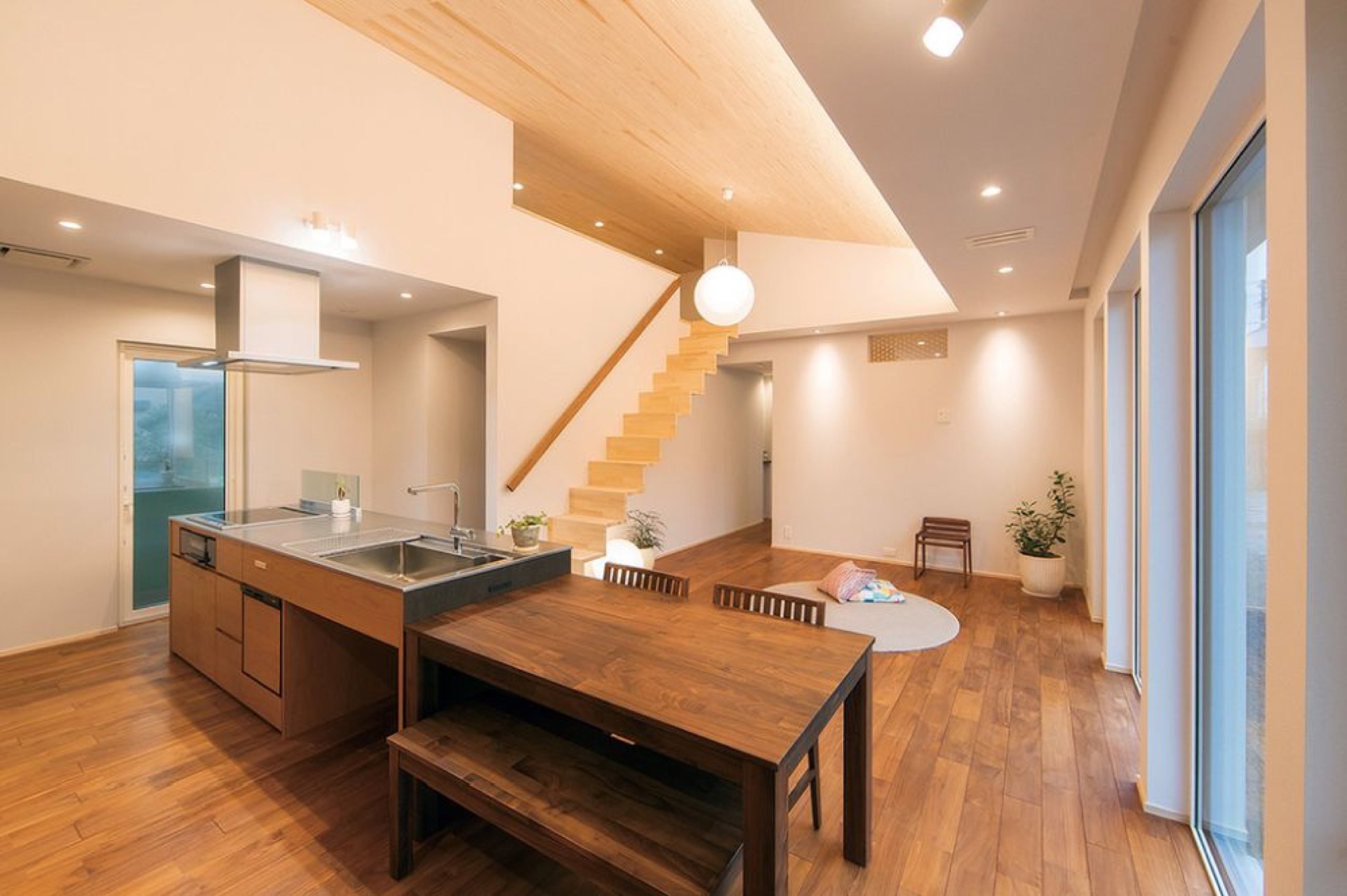 きにレイアウトされており、LDKには庭に向かって大開口を取っている。樹脂トリ
