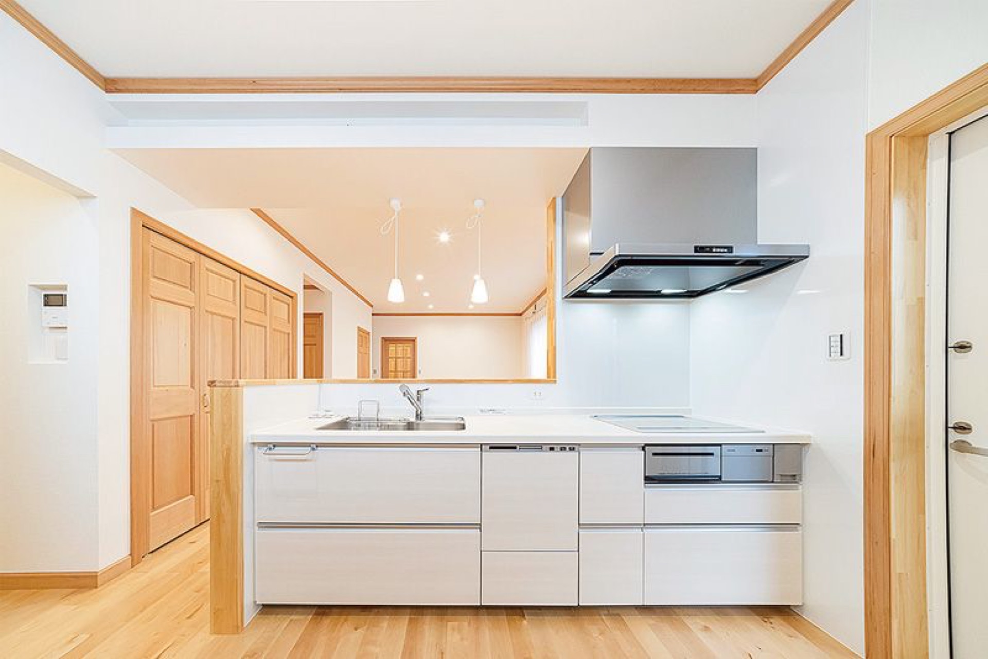 キッチンスペースに光触媒壁紙を採用