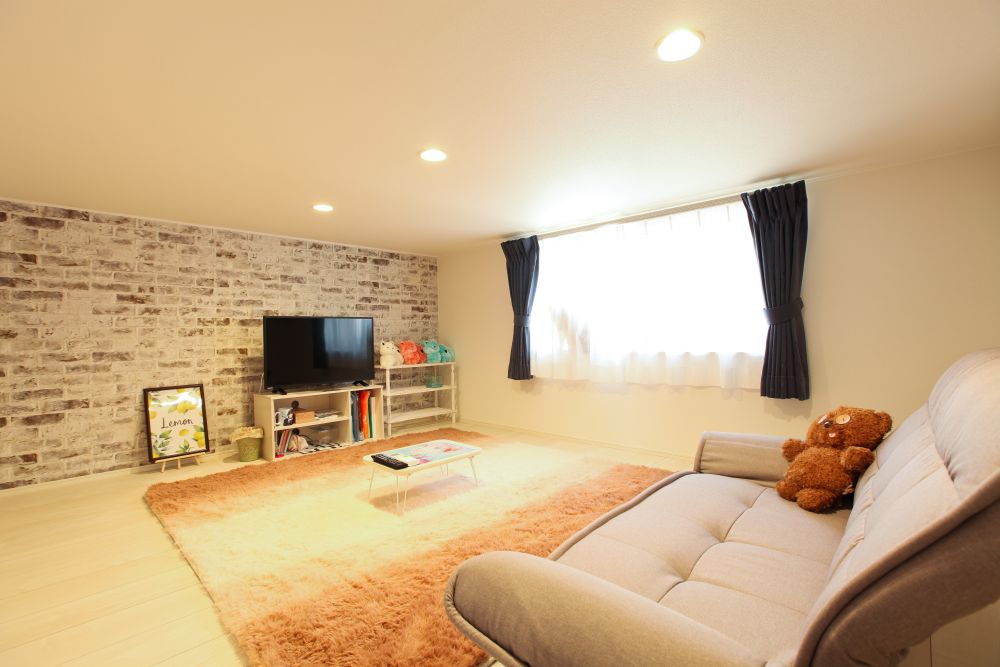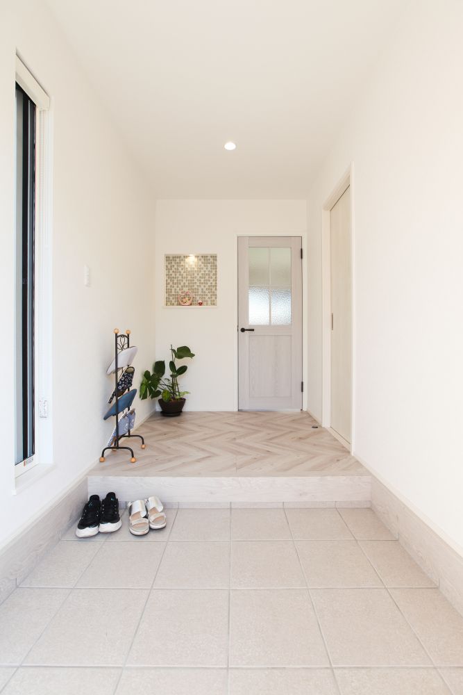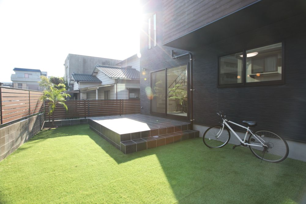 また、リビングの大窓を開けたところにタイルデッキを設置。広い庭には施主さま自身がDIYで芝生を敷いて、おうちアウトドアのステージに!