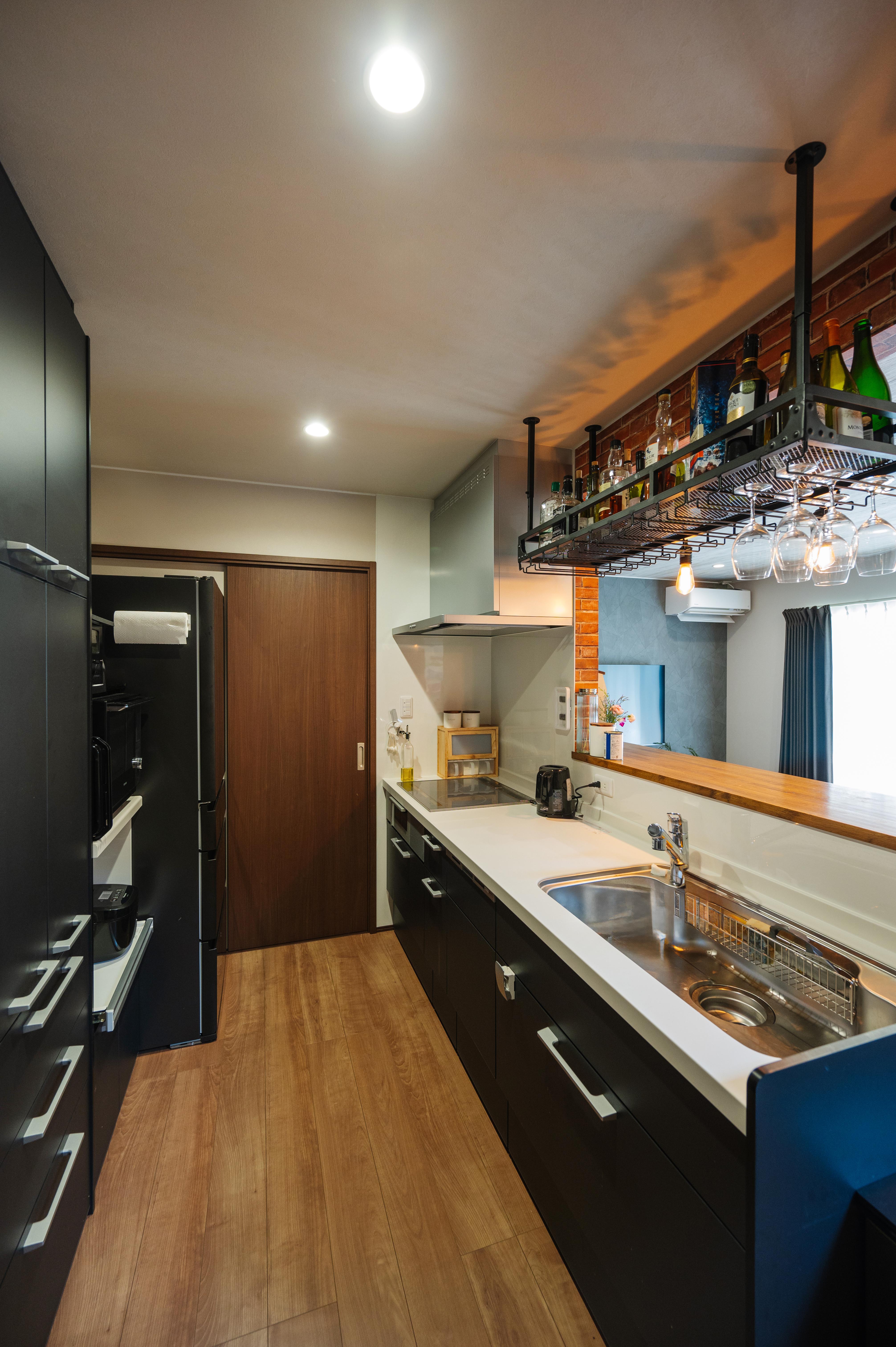 ご夫婦そろって晩酌を楽しめるよう、バーカウンターなどお洒落な飲食店をイメージしてデザインされたダイニングキッチン。