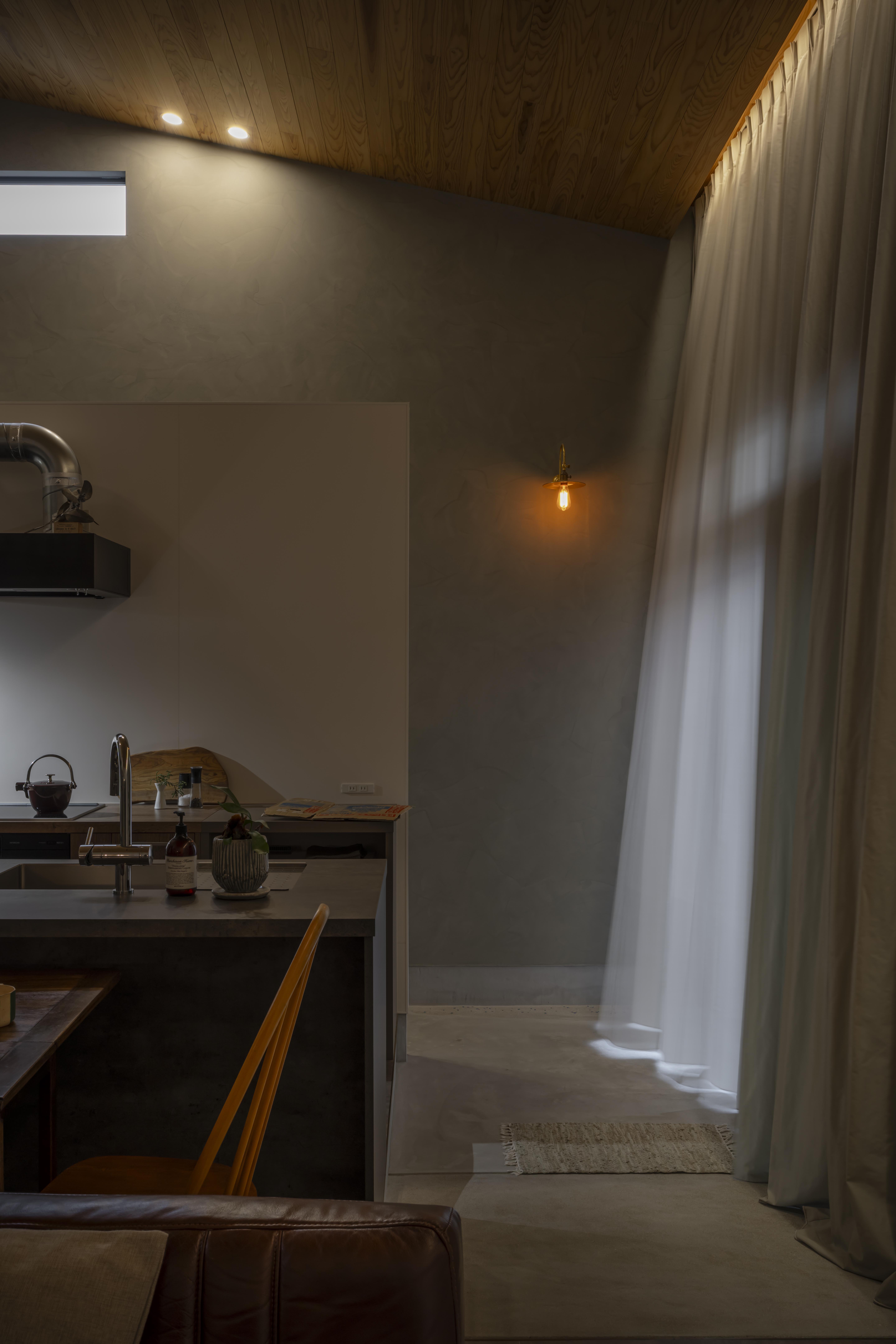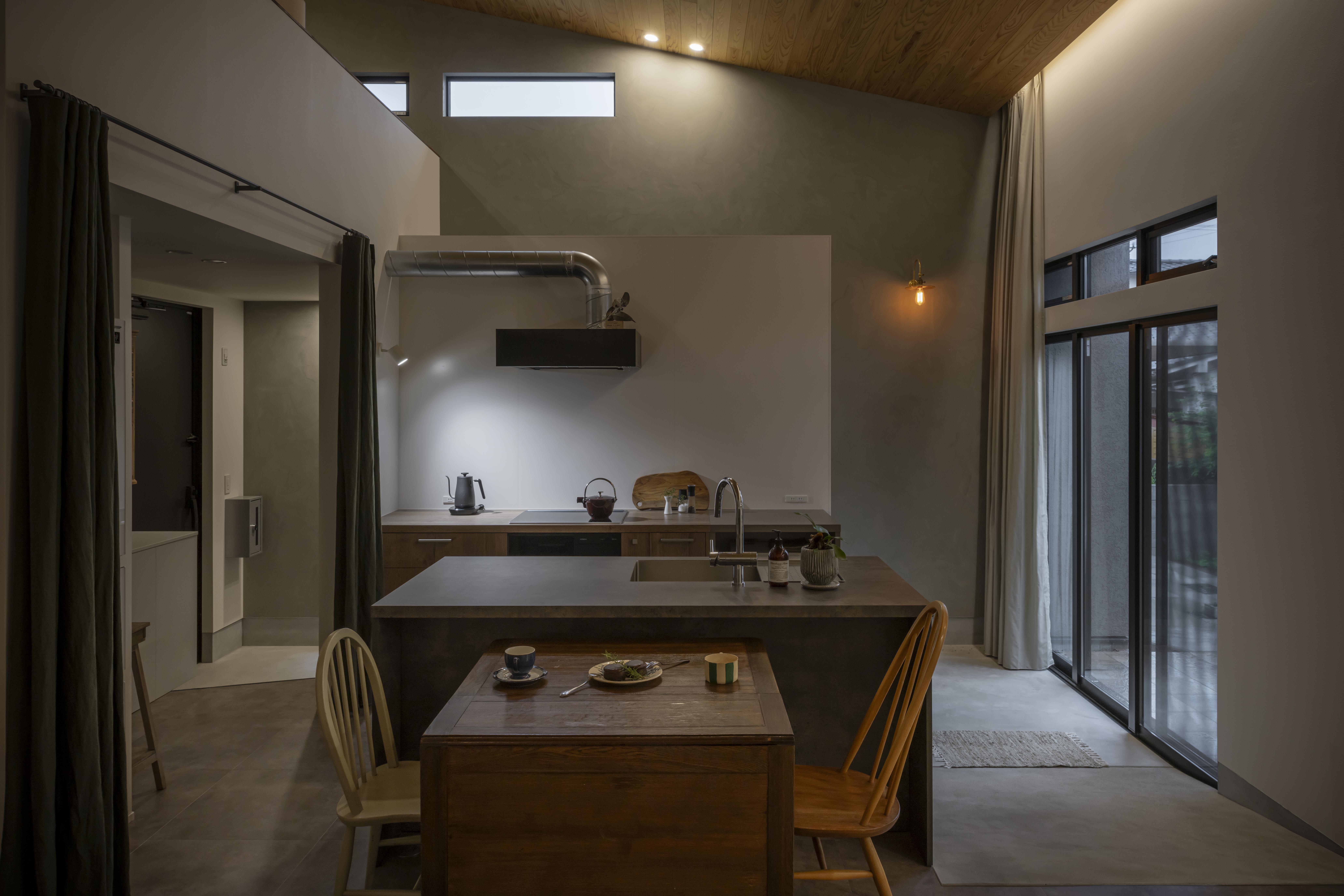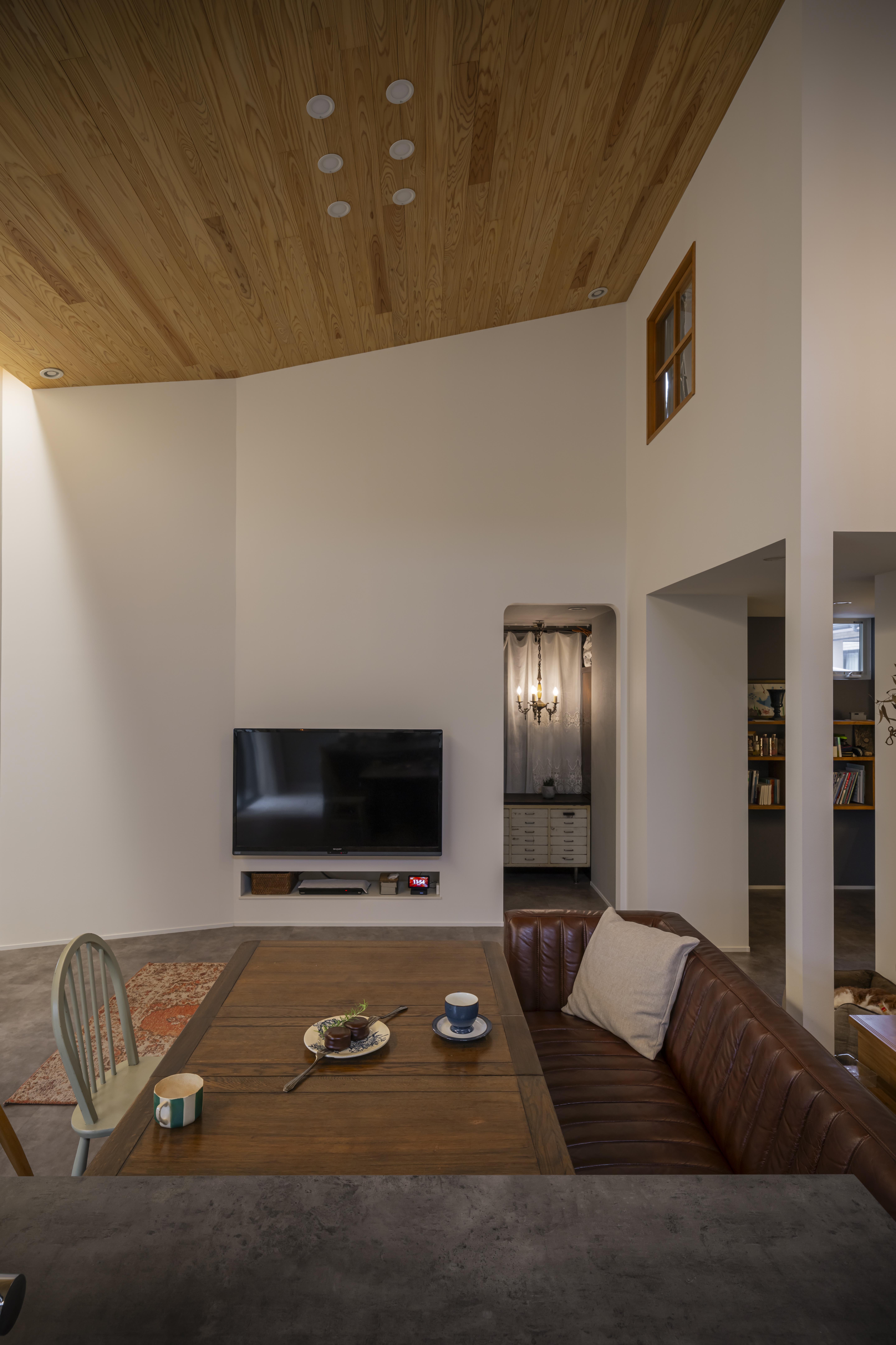 「太陽の強い光が苦手」「部屋の扉もできるだけなくしたい」。ちょっと意外な要望を口にされたHご夫妻。そこで窓や扉の位置を緻密に計画し、1階の1部屋以外は扉のないシームレスな空間へと仕上げた。玄関からは通り土間を通じて、LDKへとつながっているが、高さのある立ち上がりの壁で来客の目線をやさしくガードする。階段下スペースも取り込んだ大容量のパントリーは、必要に応じてリネンで目隠し。部屋同士の配置をずらすことで死角をつくり、ゾーニングをなし得た。「基本は家族だけで過ごす空間だからこれで十分」と奥さま。扉がないことで家中の温熱環境を一定にキープできるのもメリットとなった。さらには、アンティークをこよなく愛するHご夫妻の手持ちの家具や照明器具を活かした空間づくりにも成功している。