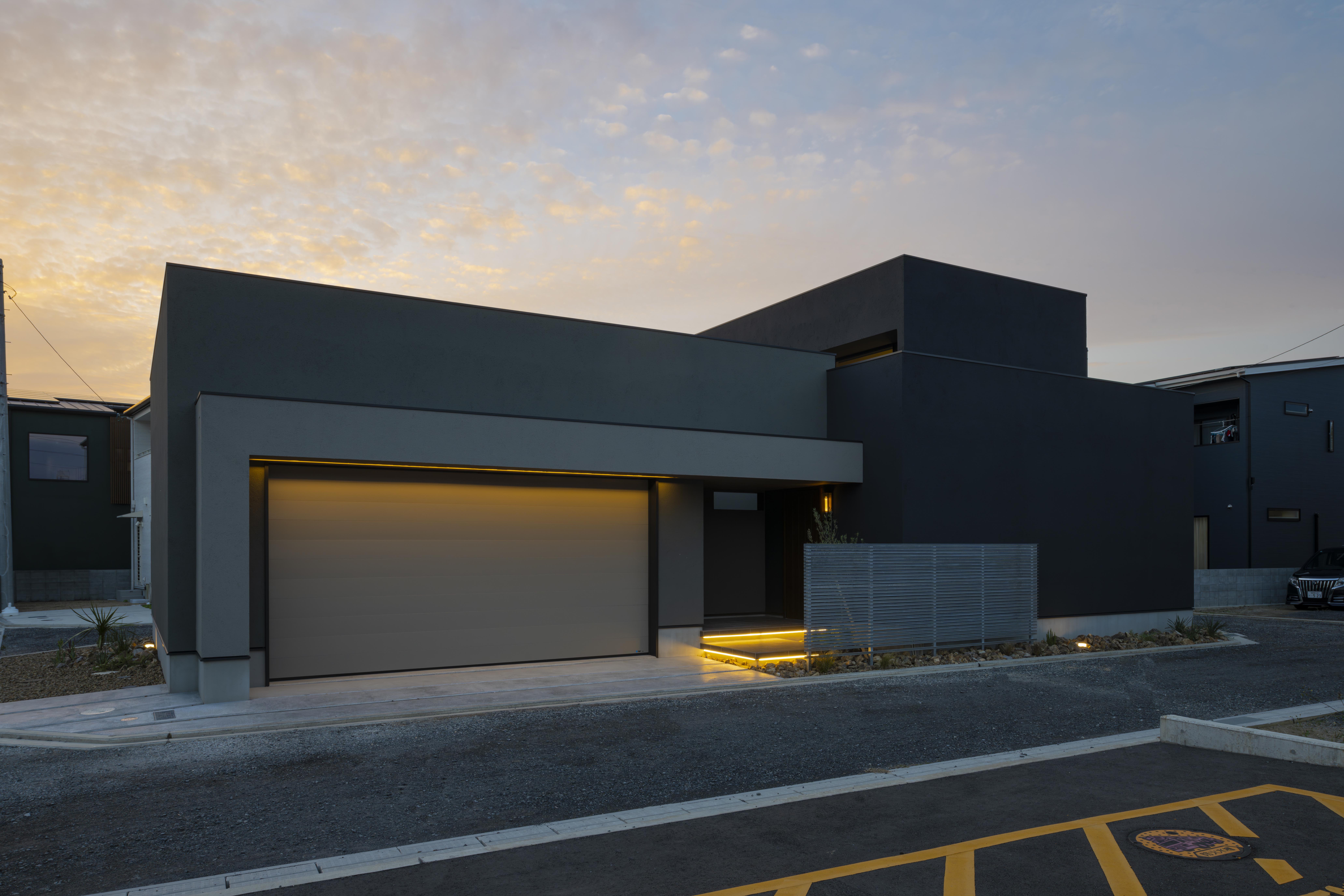 BOXを組み合わせて立体感を演出したファサードは、グレーとブラックのコントラストが高級感を醸し出す。シックでありながら、軒天に施した杉板が表情を和らげている。三面道路の敷地ゆえに、設計者は外部からの視線をガードすることを意識。「セオリーにとらわれず、敷地に合わせた設計を」と南側にはインナーガレージやウォークインクローゼットなどを配した。