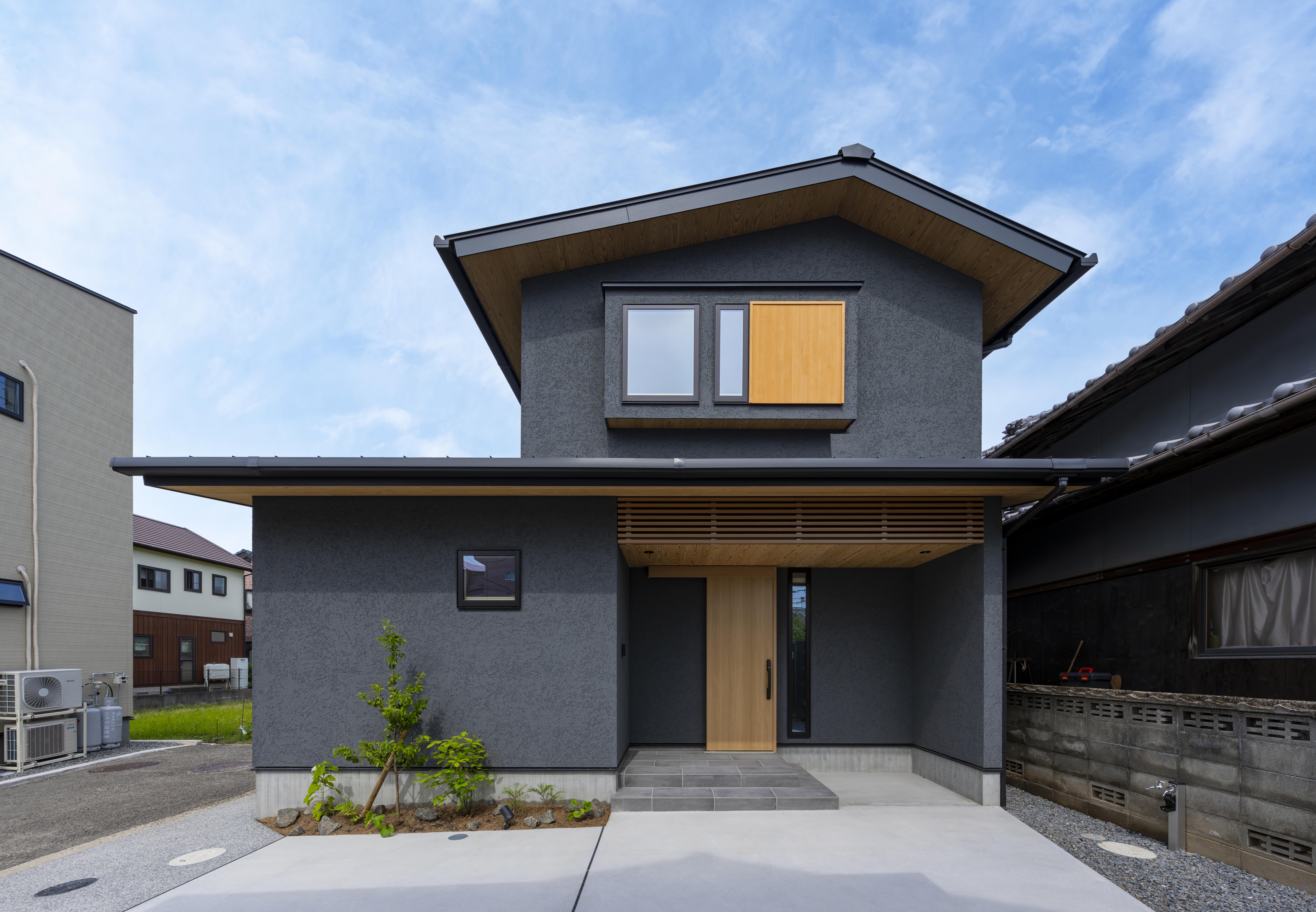 外観は1階屋根の水平ラインが強調され、2階はアシンメトリーなデザインで変化を持たせた。塗り壁や木製ルーバーのアクセントなど、細部にまで設計者の意図が感じられる建物となった。