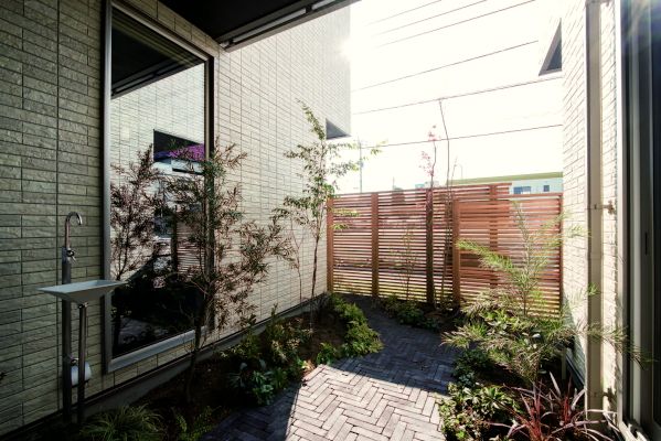 美食家で、自身も料理の腕を振るい、家族や友人に振る舞うというご主人。「家にダイニングバーを構えたいが、妻の理想の生活空間も叶えてあげたい」と検討を重ねた末、お二人の要望を満たす形として、1階と2階が異なるスタイルで構成された住まいを計画した。1階は、凹の形をした建物の中心に中庭を設け、そのまわりにご主人念願のダイニングキッチン、小上がりの和室、寝室と洋室をレイアウト。シックな雰囲気のダイニングと続きの和室でゲストをもてなす、そんな大人の愉しみを自邸に叶えた。一方、2階は清潔感のあるアイランドキッチンなど、白を基調とした柔らかい印象。奥さまの好みを表現し、家族でくつろぐプライベートな空間を創出した。長い人生、好対照のフロアをどのように使い分けていくか。時を経て暮らし方の選択肢が広がりそうだ。