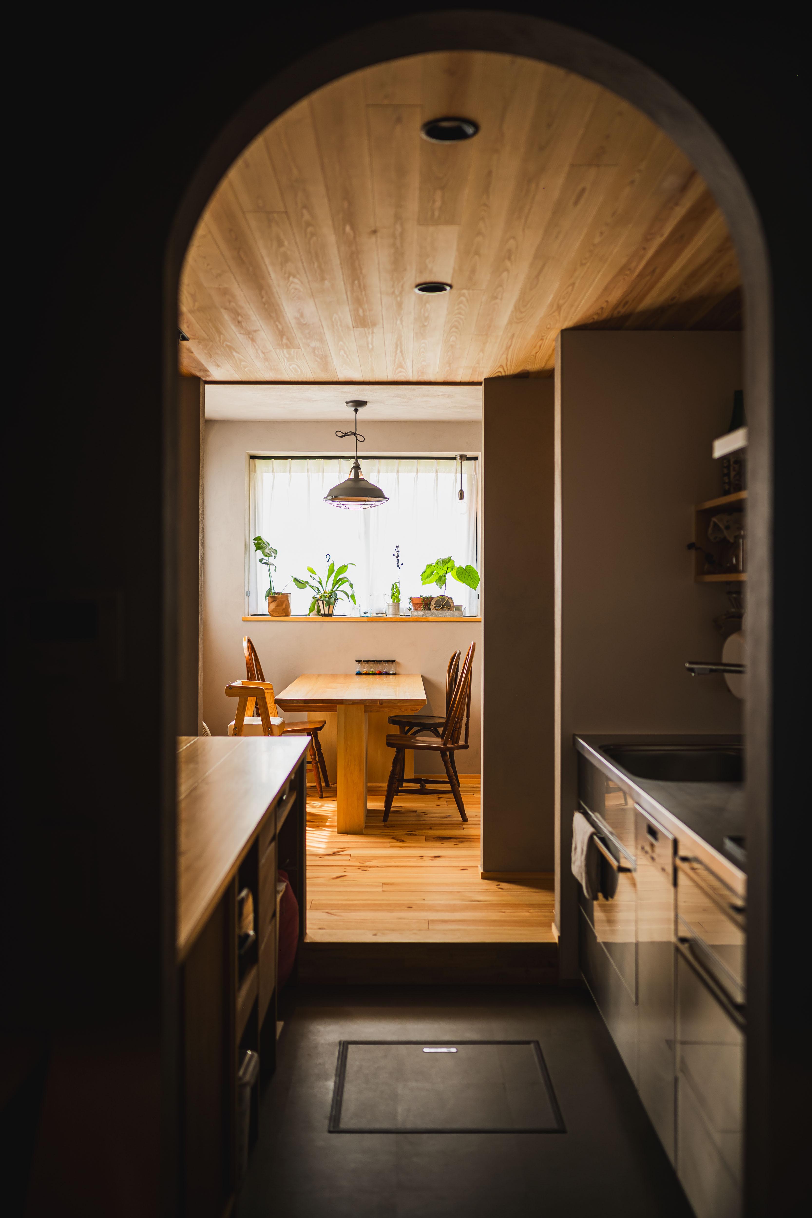 使い勝手とデザイン性を兼ねたステンレスキッチンは奥様のこだわり。家事をしながらでもコミュニケーションが取れる背面のカウンターは、ちょっとした食事や作業の場にも使えます。