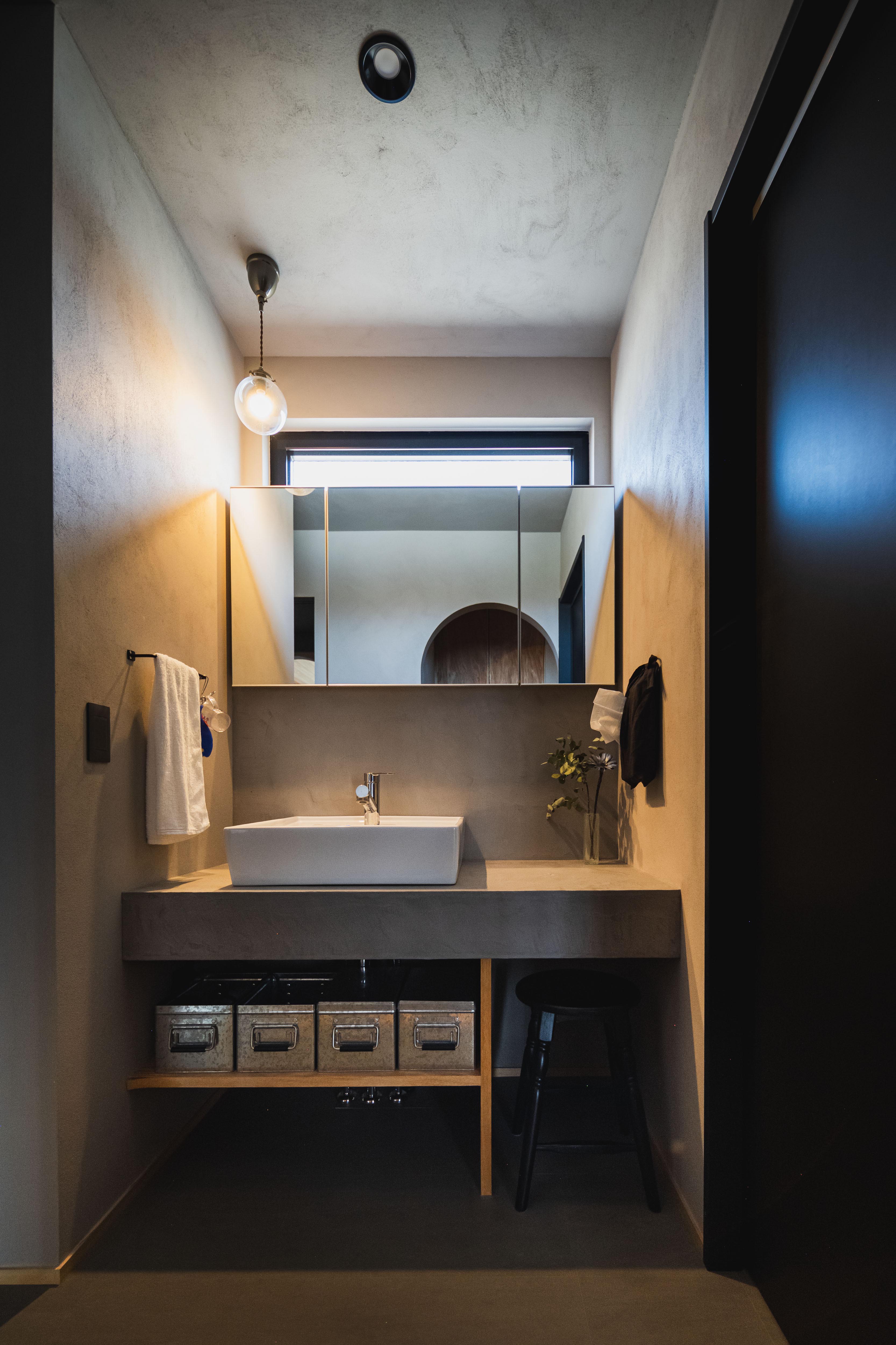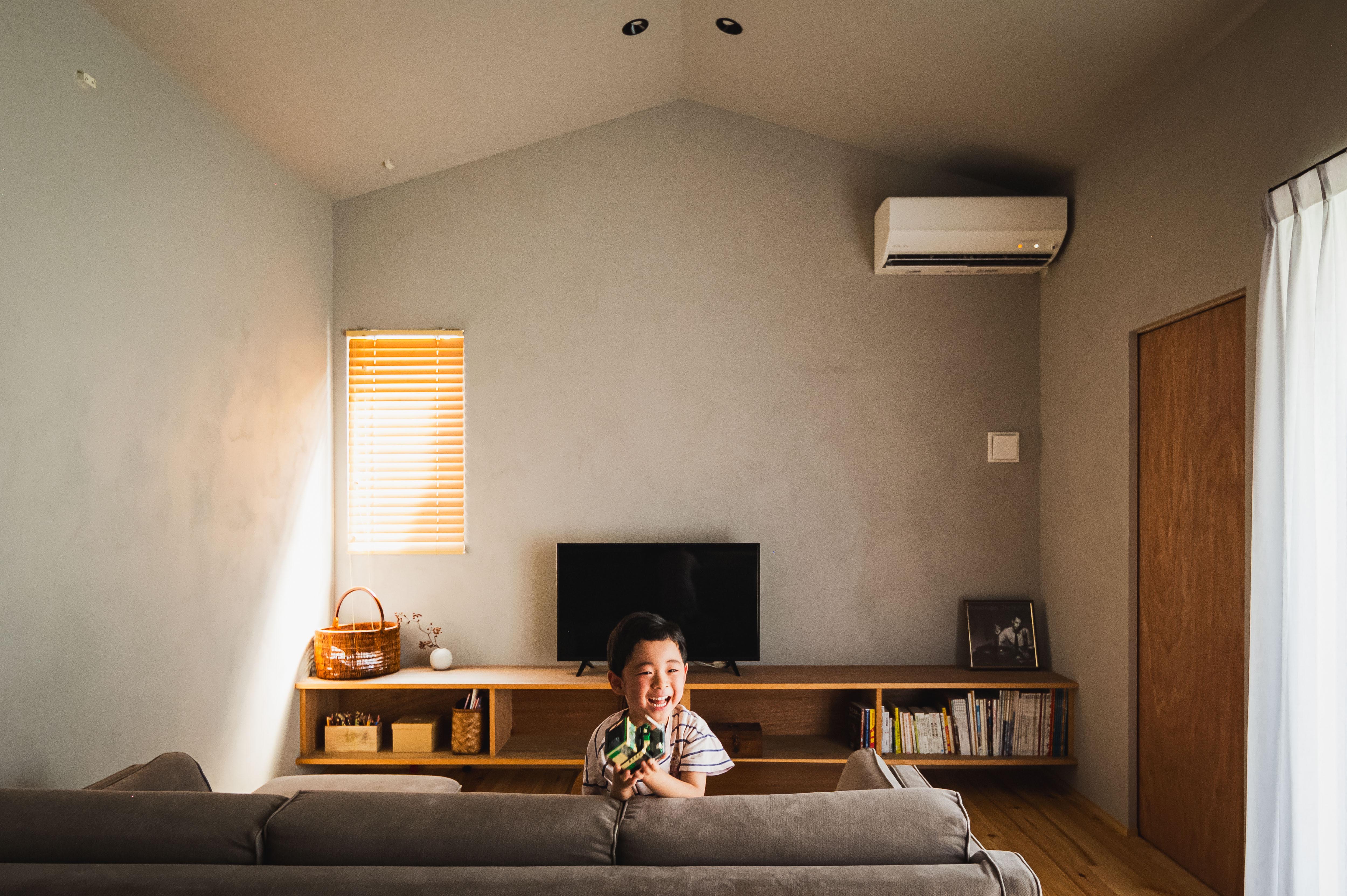 グレーのシックな内装はポーターズペイントを用いてK様自らDIY。家族や友人との共同作業で、家づくりの過程も思い出に残る時間に。