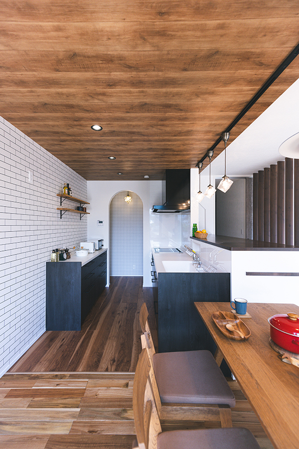 あるべき場所にあるように、各所に収納を配置。LDKはナチュラルで可愛らしい印象に。ブラウンの色味が印象深く、温かみのある居心地のよい空間になっています。