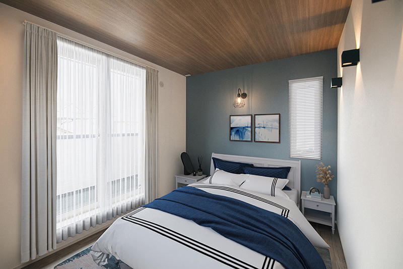 アクセントになる淡いブルー。