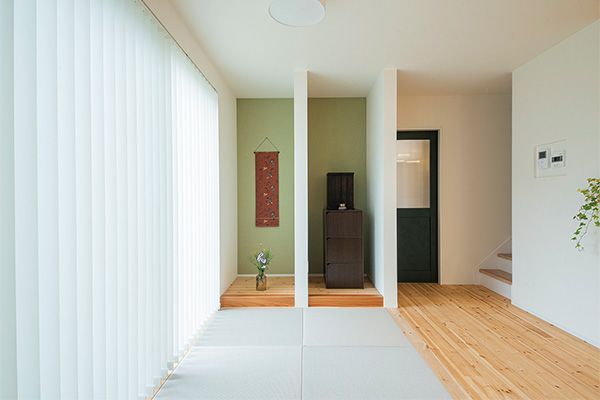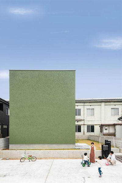 子どもたちがのびのびと遊べる シンプル&海松色の四角い家