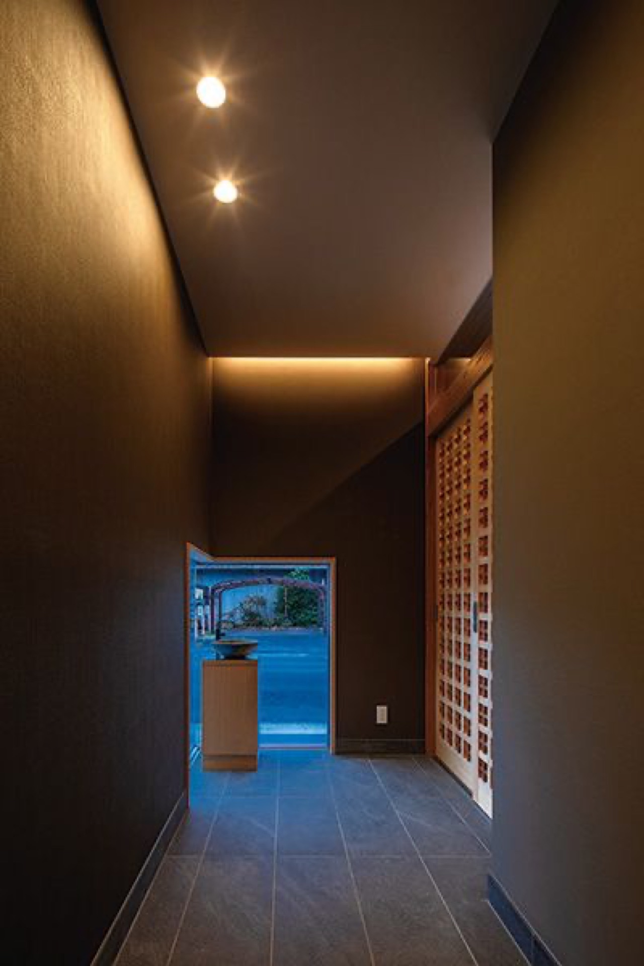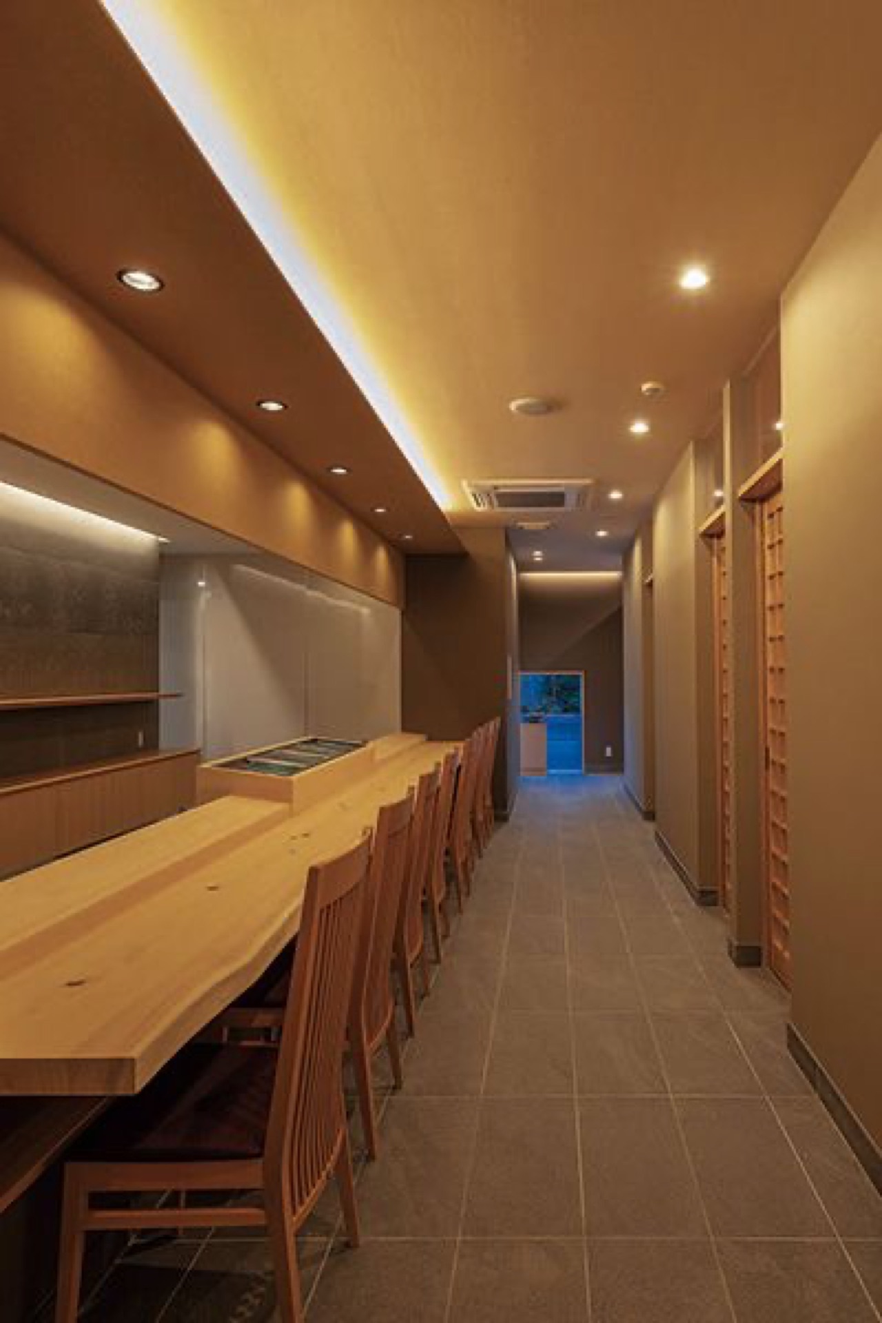 タニグチは店舗の設計・施工も得意。シンプルなフォルムのお洒落な外観は、夜、照明で浮かび上がる美しさが印象的で、目を引きます。店舗のコンセプトに合った上質感漂う内装も素敵。