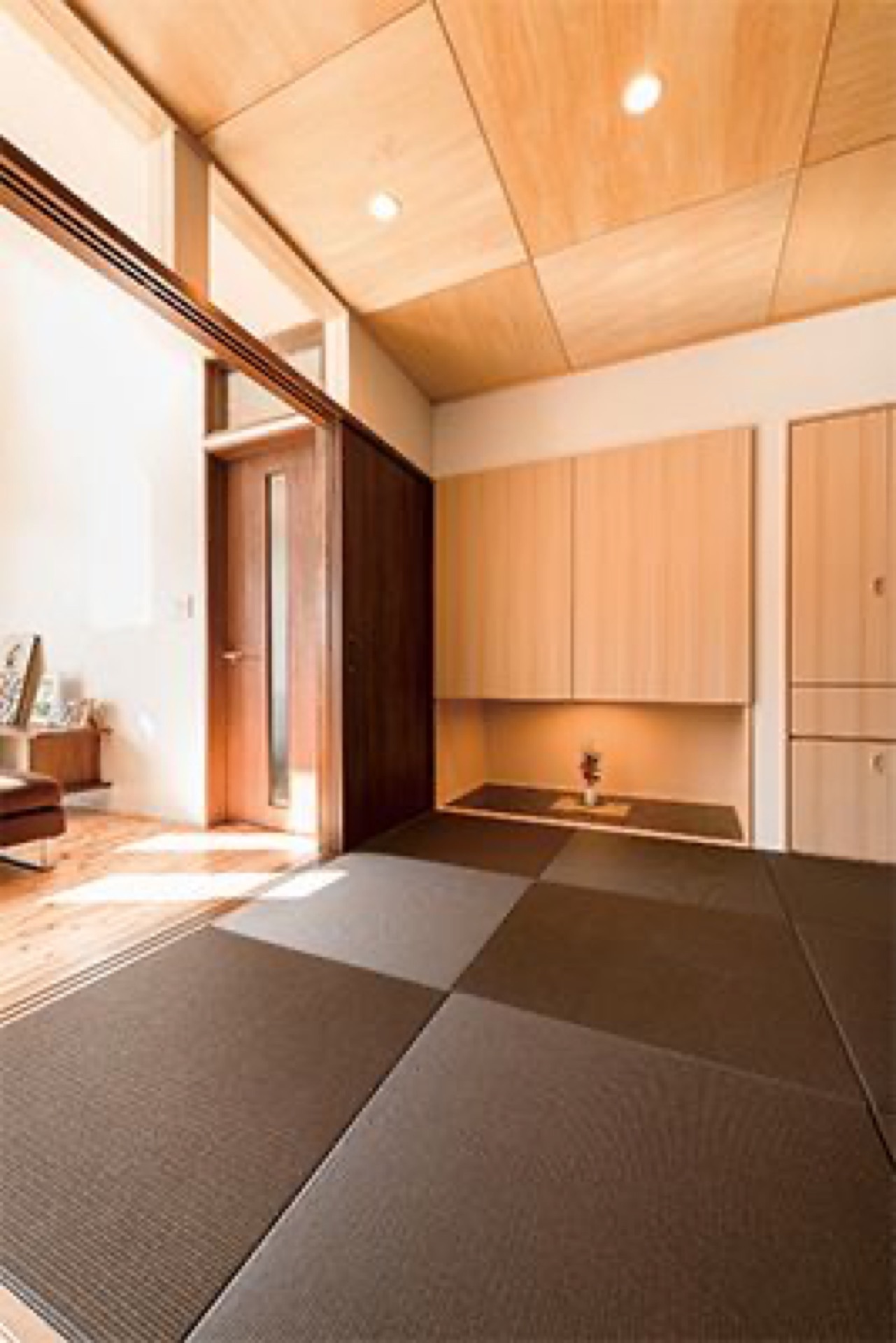 三世代それぞれが心地良く過ごせることを意識し、プライバシーが守られる間取りに。さらに和室の欄間にガラスを採用したり、ステンドグラスをアクセントにしたインテリアをコーディネートしたりと、デザインについても提案させていただきました。