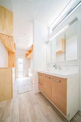 邸内に光と風を届ける吹き抜けリビングに、天井に張ったレッドシダーがヴィンテージ感たっぷりなキッチンや北欧テイストの家事室など、家族の“好き“が詰まった家。「楽しい家づくりができました」と大満足のKご夫妻です。