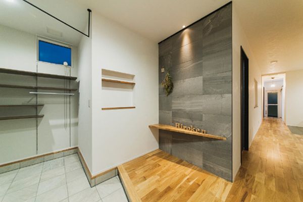 南側に高い建物があったため、LDKにしっかり光が入るよう建物を配置しました。1日の光の入り方も計算し、大開口や高窓などを確保しています。また風が通り抜けやすくなるよう、玄関と勝手口は東西の一直線にしつらえました。