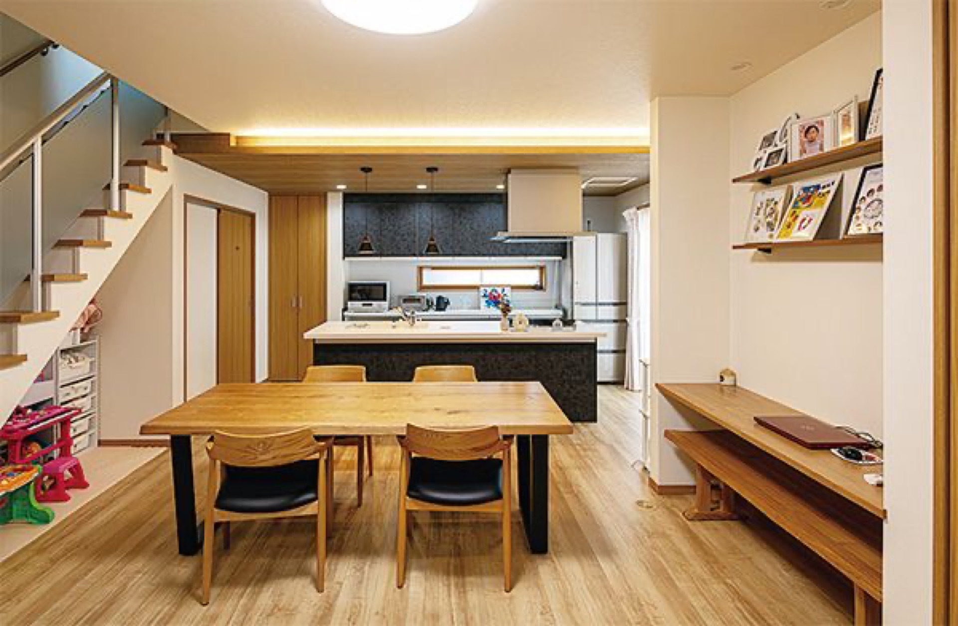 将来設計をしっかり考え、お気に入りの家の写真を集めてプランを練ったO様。「思い描いていたことが叶って大満足」の家に、笑顔と笑い声があふれています。