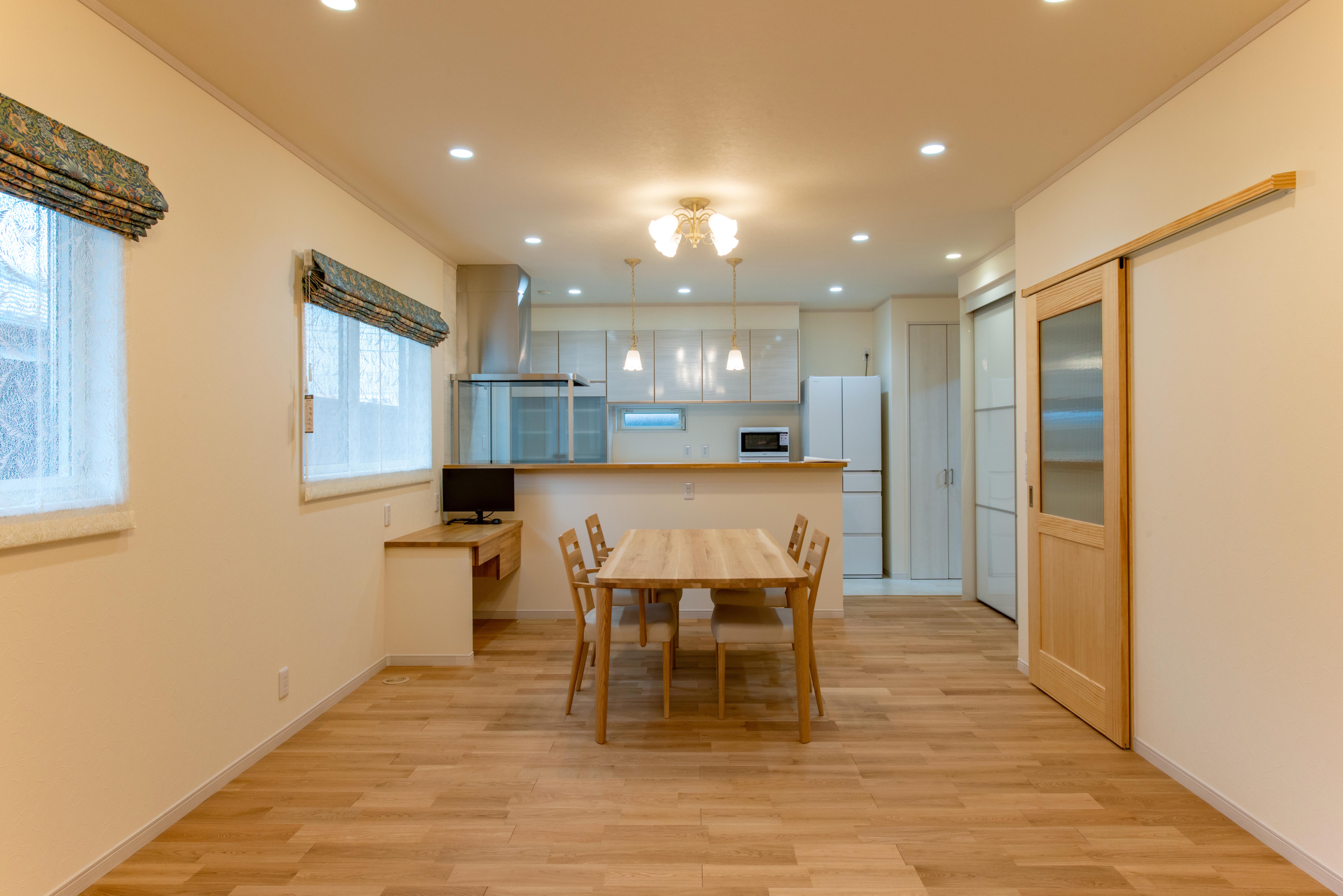 無垢の床材のナチュラルな色合いに合わせた内装コーディネートからは暖かい雰囲気を感じられます。