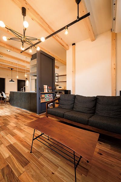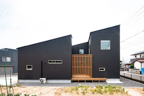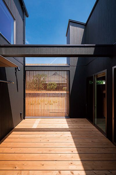 道路に面した南側を玄関とし、開口も最小限で閉じた印象を受ける。しかし邸内に足を踏み入れると、そのイメージは良い意味で裏切られる。視線の先には、3面ガラス張りの中庭。それを囲むように独立の和室とLDK、吹き抜けのスキップフロアが連続しており、外からの視線は遮りつつ、光と風が届く住環境を叶えた。