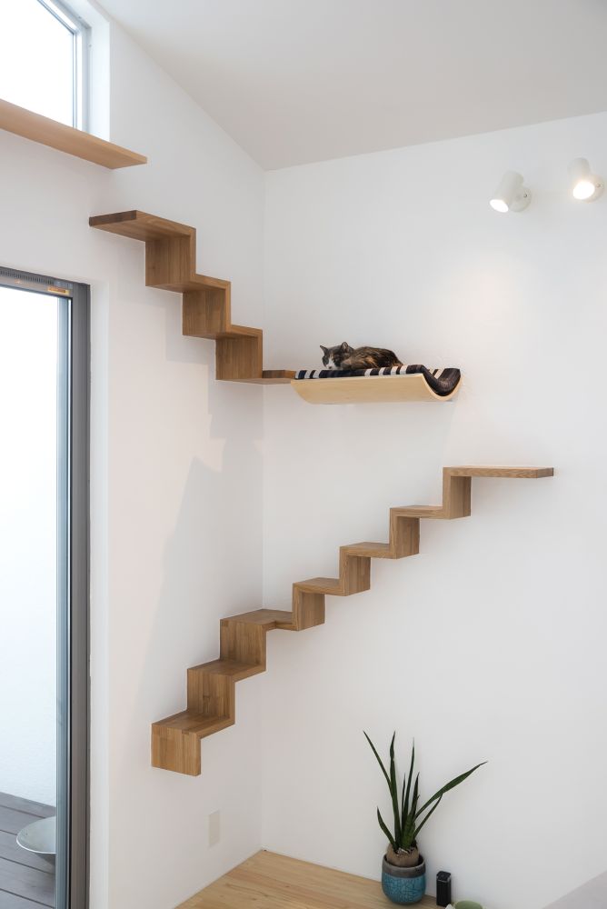 白くてシンプルな外観と、無垢や漆喰の自然素材が心地よい住空間が印象的なOさま邸。外からの視線を緩やかに遮りながら、家のなかに青空のウッドデッキを設えました。3人のお子さんとネコちゃんも心地よい住まいの完成です。