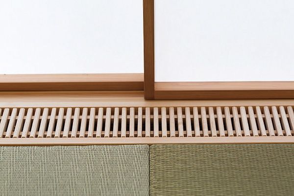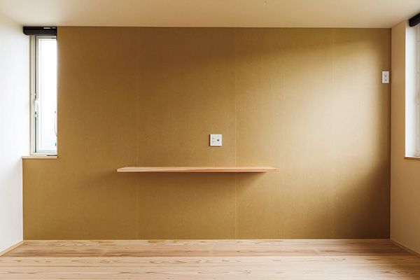 杉や珪藻土の質感を生かし、とにかくおさまりの美しさにこだわる神野さん。こちらの住まいでも、そんな「建築オタク」の一面がいかんなく発揮されている。木目が主張しすぎると野暮ったくなるため、杉と珪藻土のバランスを重視。窓や建具の高さのラインをそろえ、ハイドアの建具を造作するなど視覚的にすっきりと見えるように注力。建て替えのため、前の住まいの玄関の框をリメイクしてキッチンの背面収納のあしらいとしたり、各部屋の通気口まで木の格子にしたり…。そんな神野さんの高い要求に手練れの職人集団が応え、細部まで美しい、終の住処が完成した。