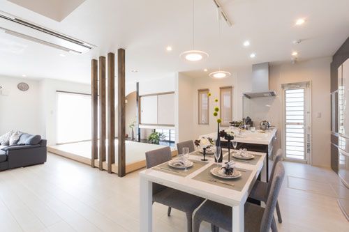 天然木の素材感を活かした、ナチュラルテイストなウォールデコ。玄関、LDK、洋室なども、暖かみがあるおしゃれな空間です。広いLDKや、書斎、ウォークインクローゼット、タタミコーナーなど、こだわりいっぱいの自由設計です!