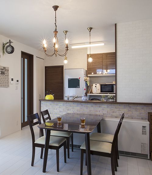 外観も内観もとことんカントリー調にこだわったお家になっております。外観も妻飾りなどがよりカントリ-調を引き立たせるアクセントになっており、内観もデザインに合う家具で統一をされた素敵なお家に仕上がっております。