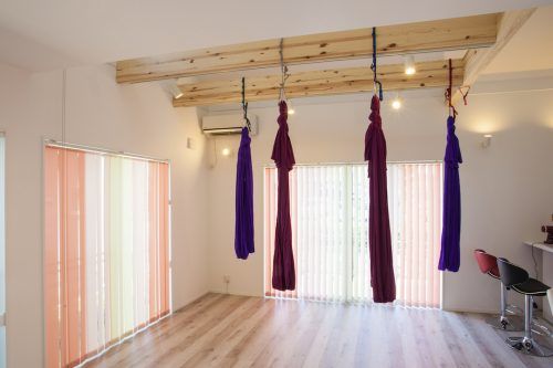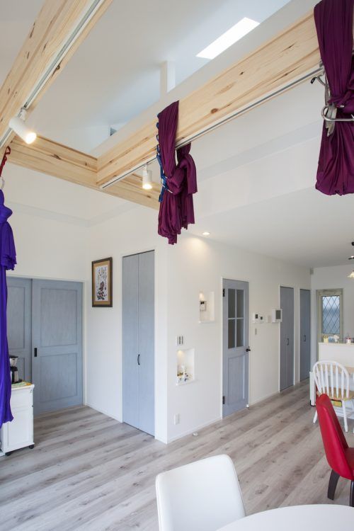 「料理教室やヨガスクールをしたいけど、店を構えるのは不安」という人たちに、レンタルスペースを提供している吉田さんご夫妻。開放的な吹き抜けやパステルカラーのドア、エアリアルヨガができる梁など、秀光ビルドと話し合いながら理想的な空間を生み出しました。