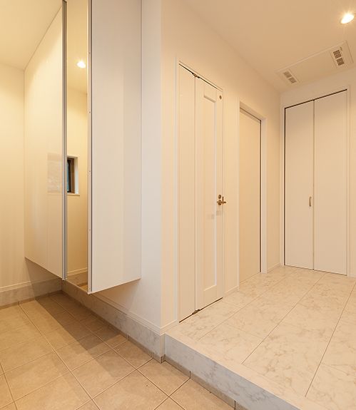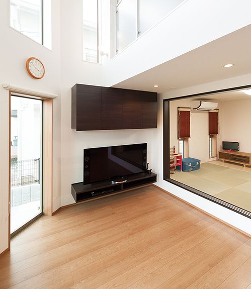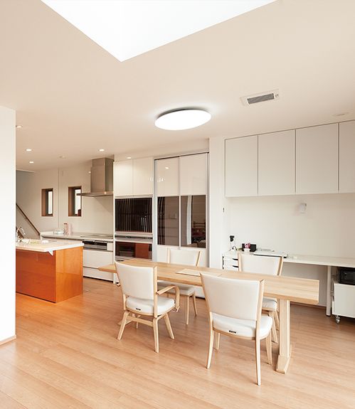 周りの外観に合わせながらも、窓の配置で差別化を図り、デザイン性に特化したお家になっております。内部も家事動線を意識したLDKの配置になっており、気持ちのいい自然光が入るふけぬけを配置し、家族みんなでゆっくりくつろいでいただけるお家になっております。
