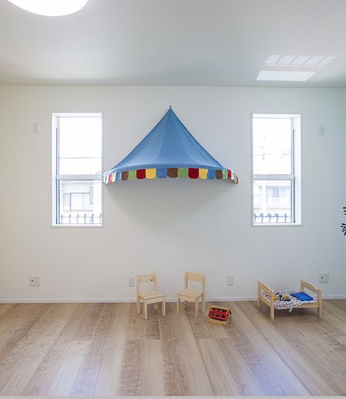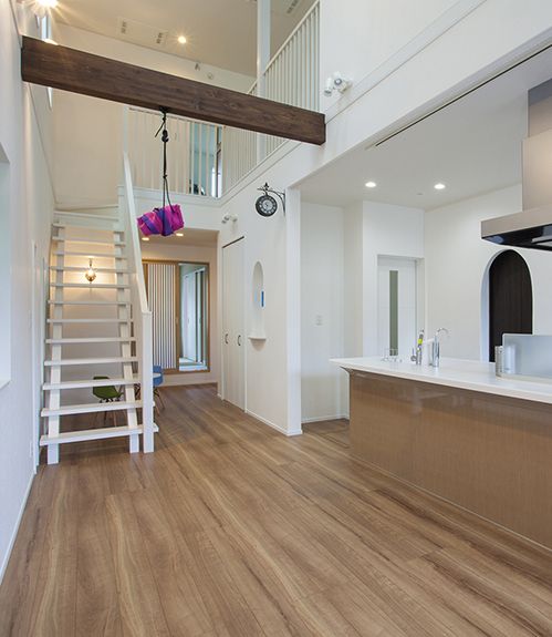 奥様のこだわりがたくさん詰まった、外観も内観もフレンチスタイルのかわいいお家になっております。LDKの化粧柱や吹抜け、外観のフラワーボックスなどがアクセントになっております。当社に任せていただければ、かわいいは作れます。