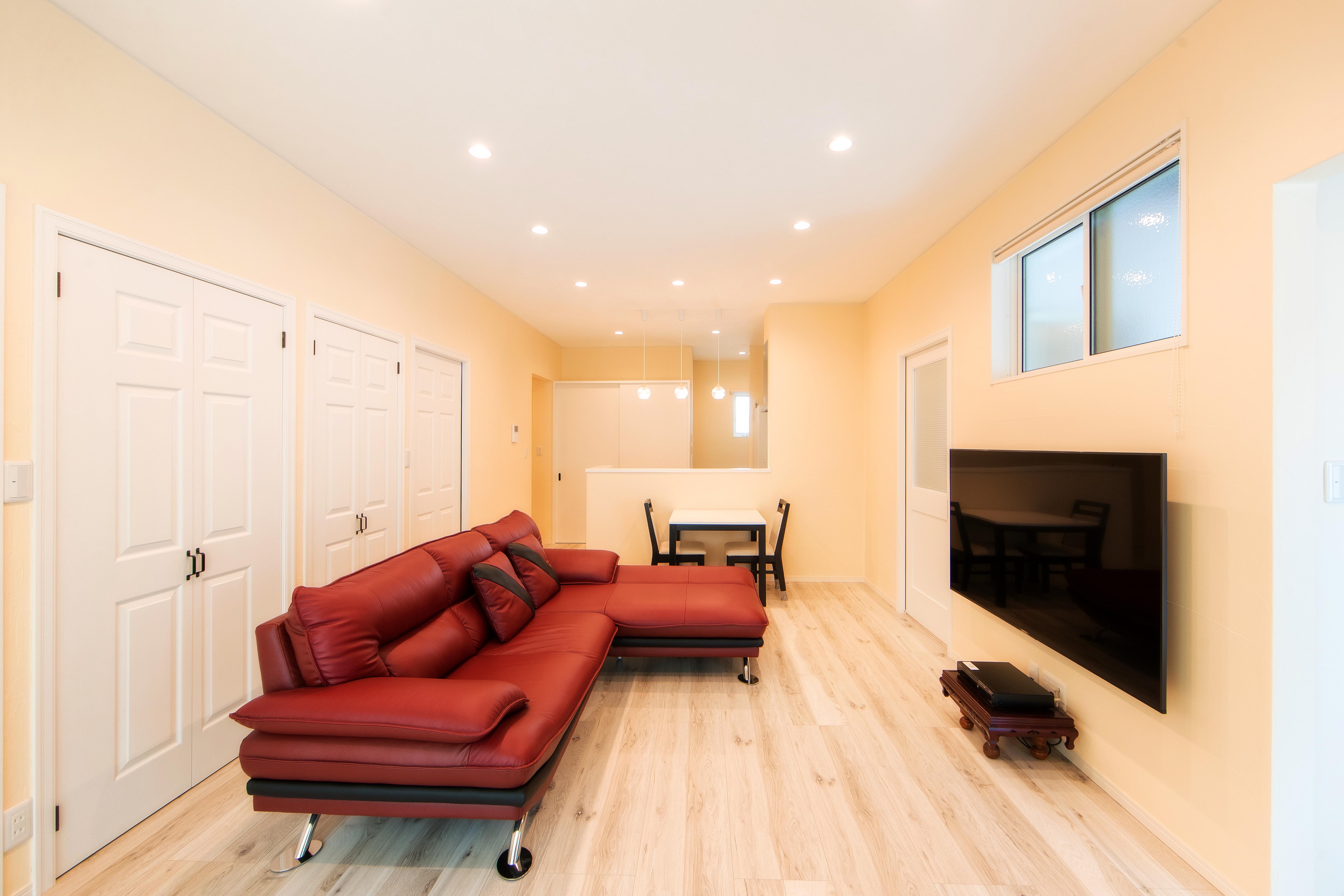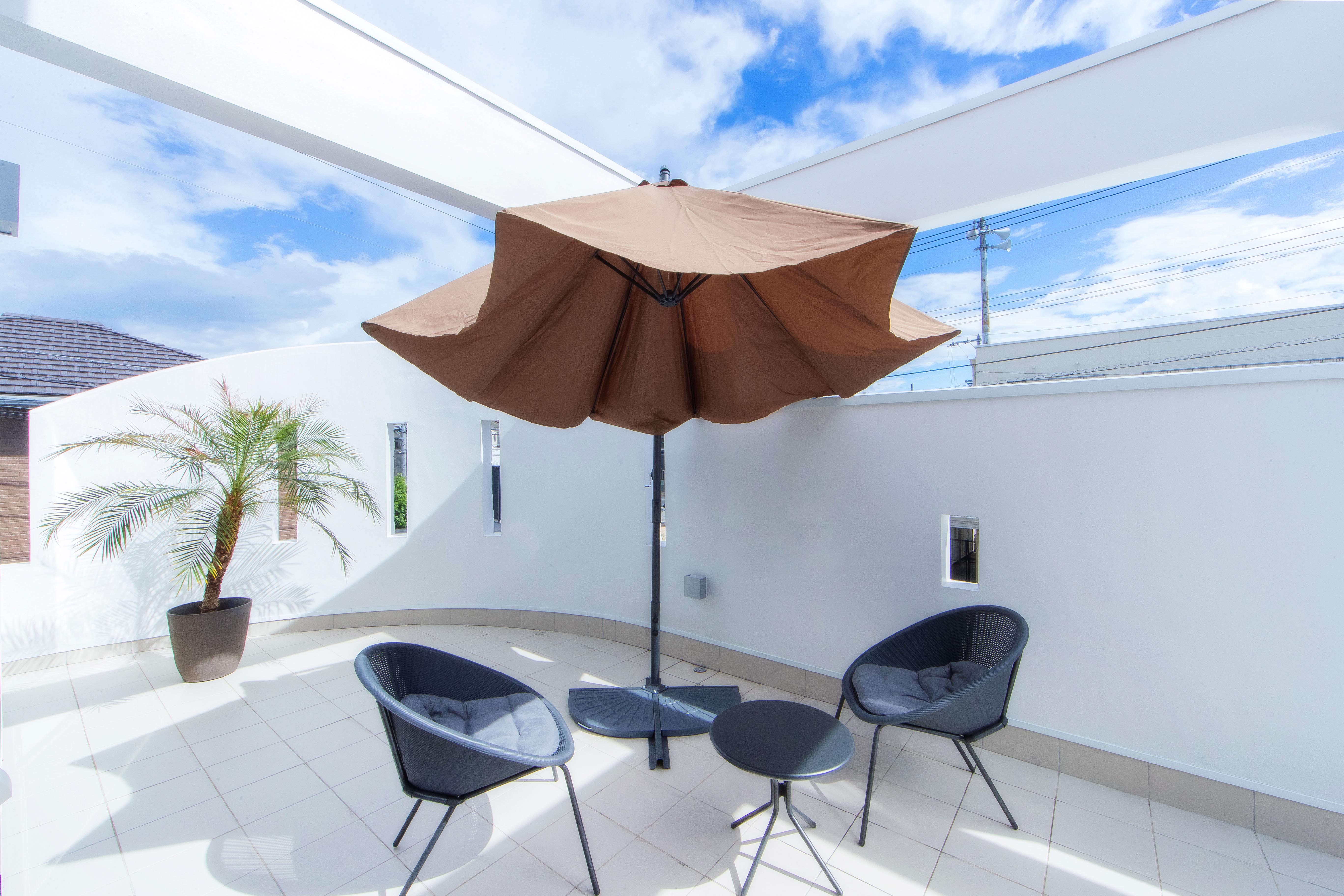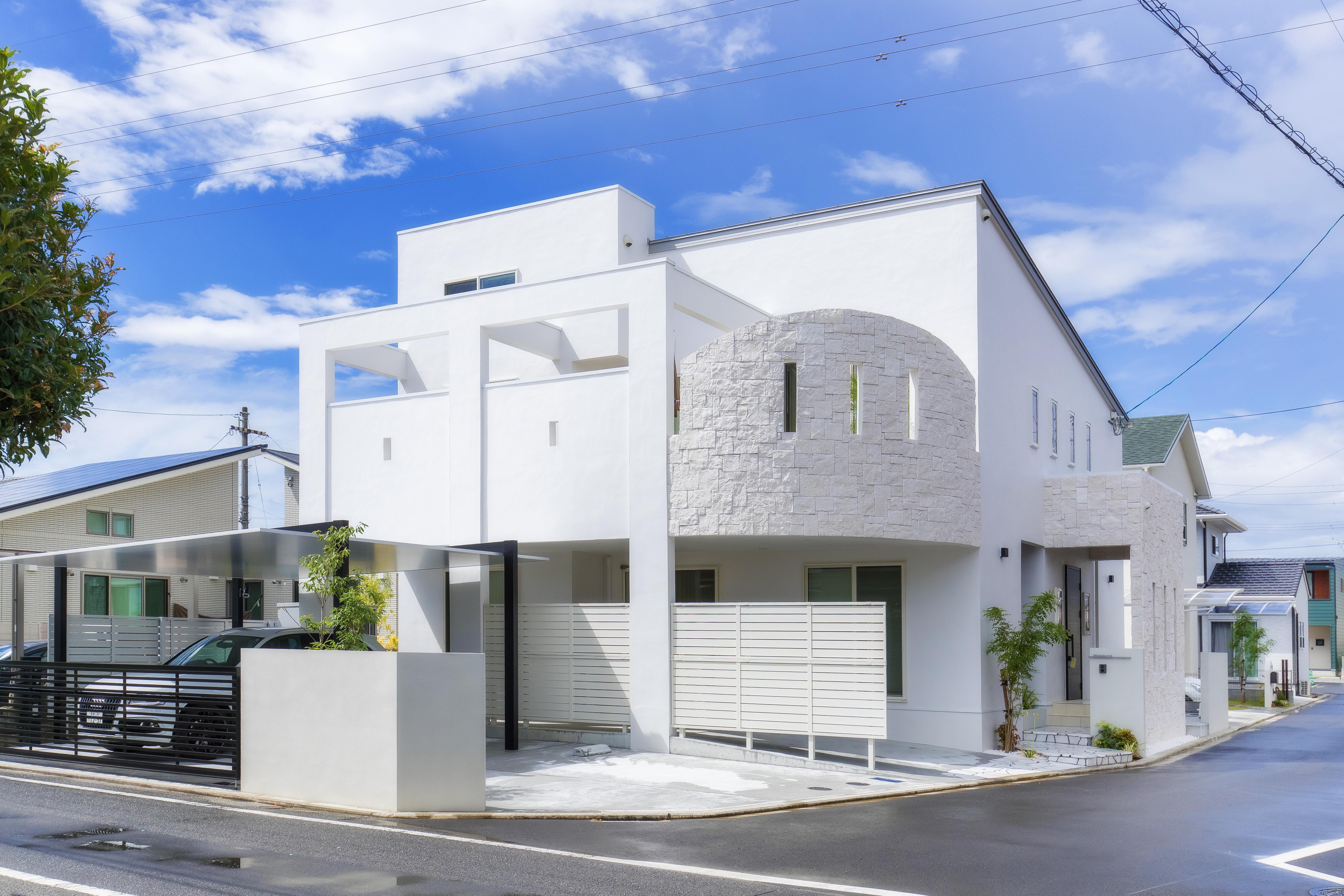 地中海にたたずむヴィラを思わせる、スタイリッシュかつアーバンスタイルな建物。そこは親世帯と子世帯がほどよい距離感をキープしながらも、互いの暮らしを楽しむ二世帯住宅。1階は親世帯が、2階は小世帯の生活空間となっており、それぞれのライフスタイルを投影したデザインが描かれている。造作されたアイアンの手すりが美しい階段を上がると、ガラス越しに真っ白なLDKが広がり、テラスに面した大窓から燦々と光が降り注ぐ情景は圧巻。ブラック&ブラウンのアクセントカラーが映え、豊かで上質な暮らしが想像できる。またデザインだけでなく、寝室から最短距離で移動できる水まわり、ほどよいおこもり感のあるロフト、適所に設けられた収納など、日々の暮らしやすさにも十分に配慮がなされている。ご夫妻お気に入りのバルコニーではべランピングを愉しみ、癒しのひとときを満喫しているそう。