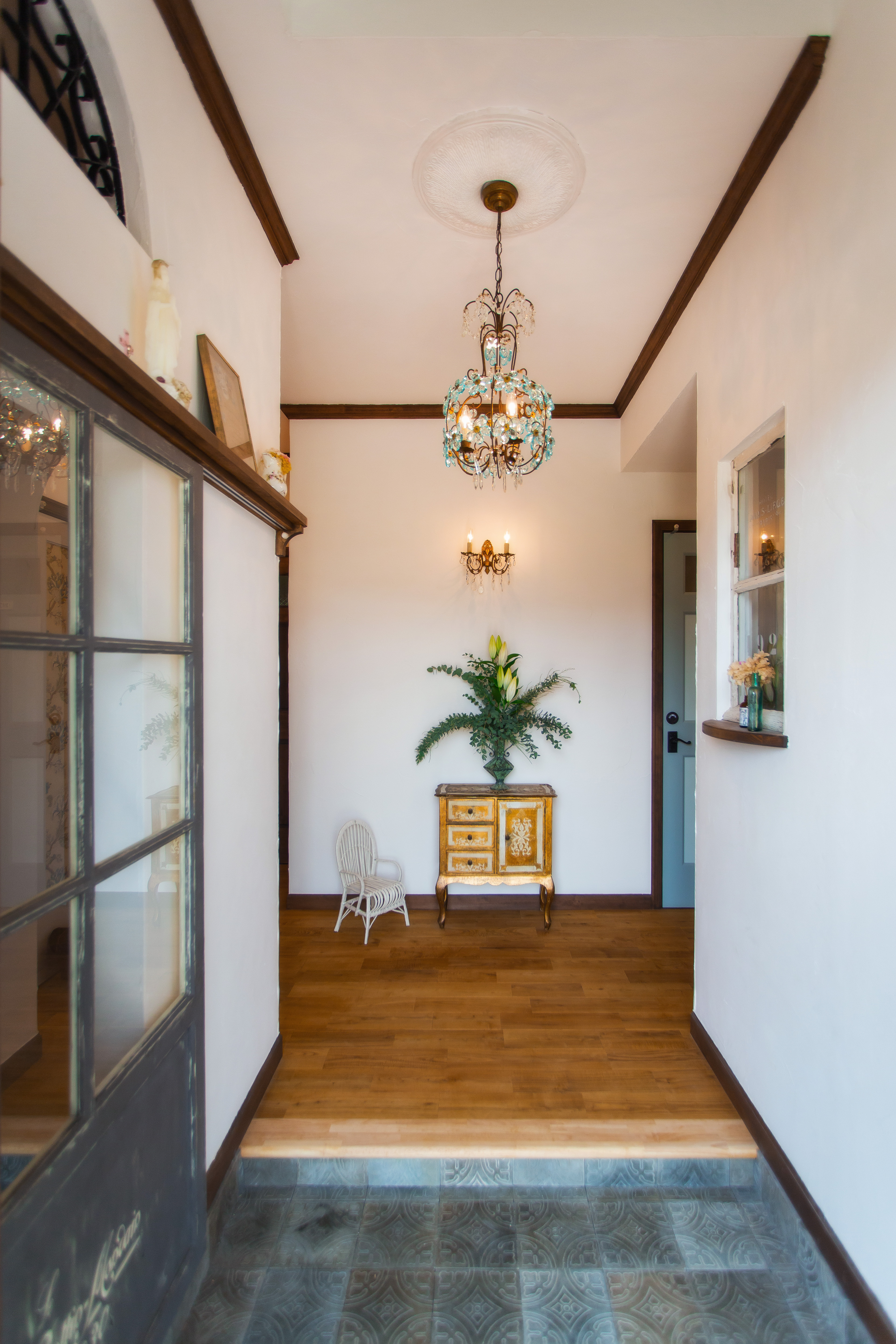『イエプロ』で見つけた住宅建築研究所のページに目が留まりアクセスしたところ、設計士と意気投合し、数年間ゆるやかにおつきあいするなかでお互いへの理解を深めていきました。具体的なプランニングに入ったときには、改めて好みやライフスタイルを伝える必要がないほどに。そんな良好な関係から生まれたA邸には、奥さまが「家を建てよう」と考え始めたときから買い求めたアンティークのドアやアイアン、輸入の照明器具が活かされている。またキッチンは雑誌で見た憧れの輸入品をお手本に、より使いやすさに配慮しながら造作。持ち込みの部材に合わせて、全体をエレガントかつシャビーな雰囲気にデザイン。時を経てなお輝き続けるアンティークのテイストに、無垢材や漆喰壁などの自然素材が調和した邸宅は、住み手とつくり手の美意識が息づいています。