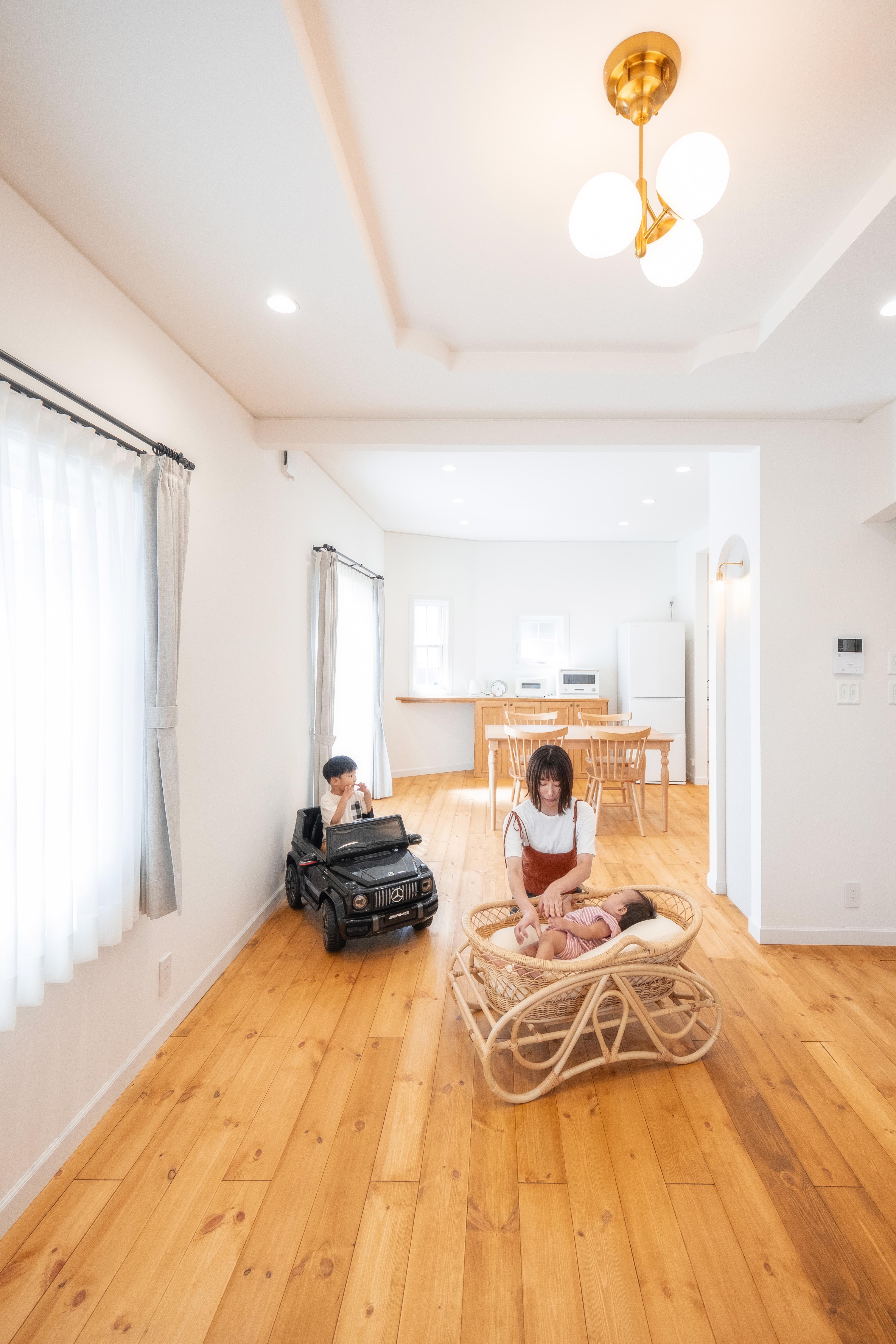 さらに、玄関からの2way動線や随所の収納計画、ビルトインガレージから水まわりへのスムーズなアクセスなど、暮らしやすさへの配慮も。“大人かわいい”が絶妙なバランスで息づく、満足度の高い住まいが完成した。