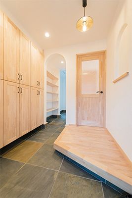 「ちょっと変わった家」を求めていたSさま。無垢の木や漆喰、天然石など自然素材の質感が際立つ無添加住宅®を実現しました。造作の土間収納や家事室などの機能性に加え、どこにいても家族の気配を感じられる動線も秀逸です。