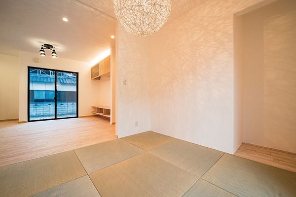 自然素材ならではの質感を組み合わせたプランを計画。最小限のデザインにより、シンプルですが面白味のある住空間を提案しました。米のりやにかわなど接着剤も自然素材で徹底。フローリングのワックスもお米が原材料で、しっとり気持ちいいですよ。