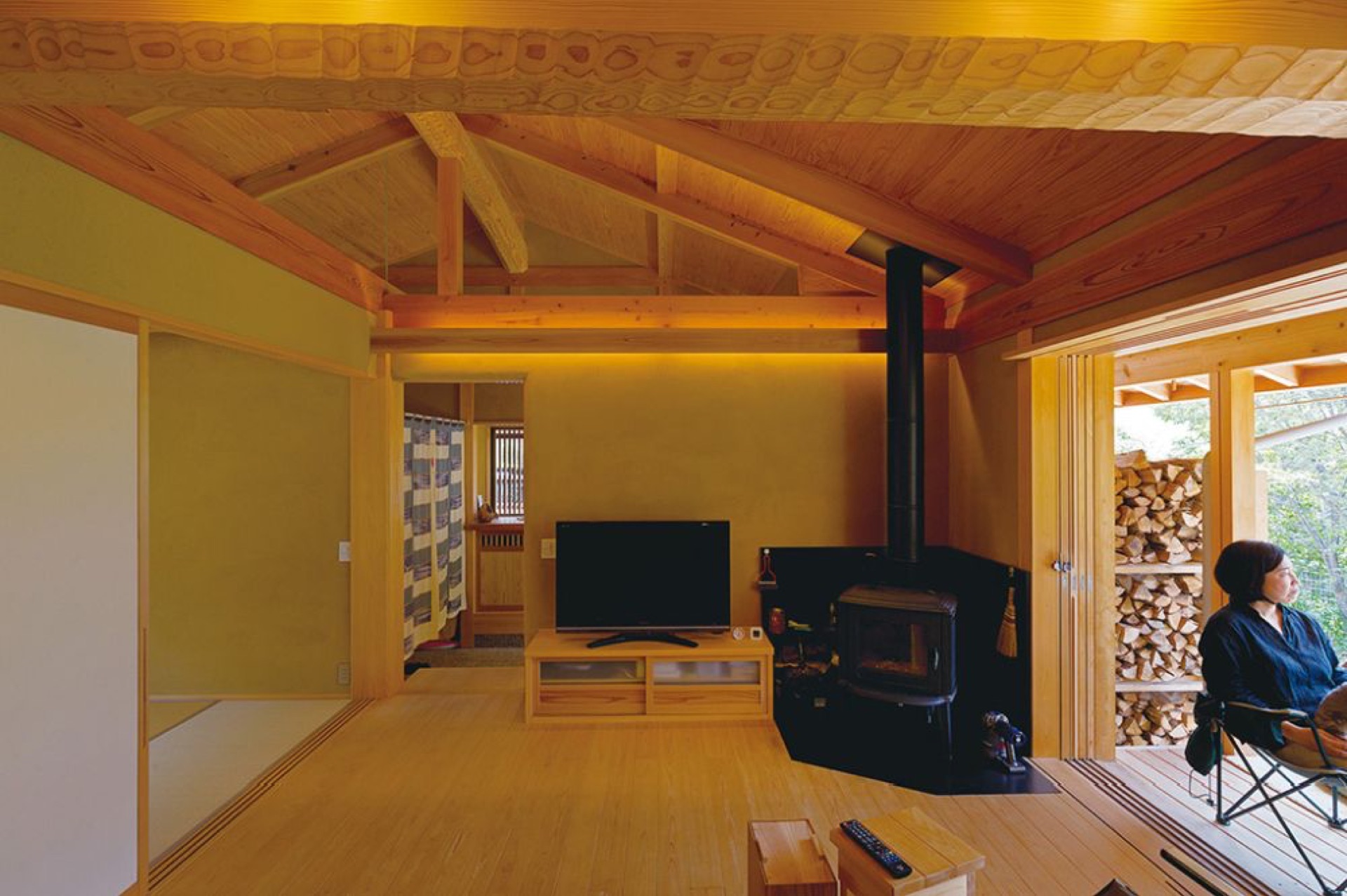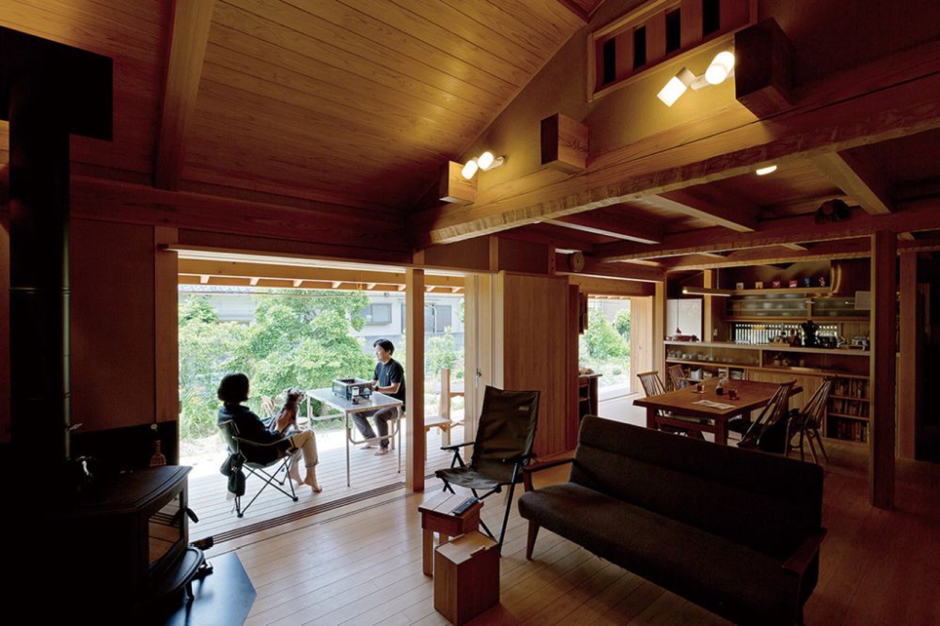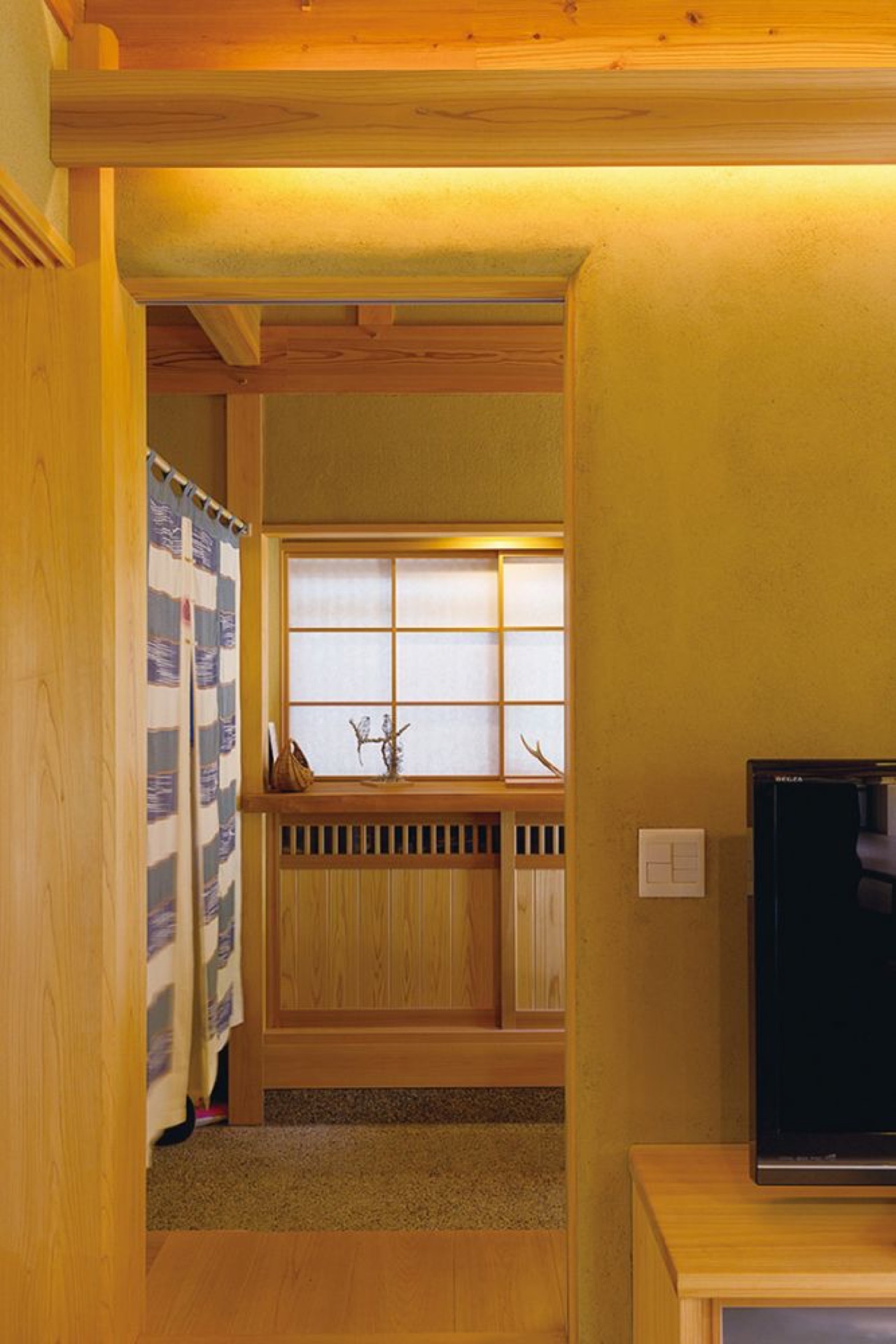 来の蓄熱性や調湿性を発揮。縁側の深い軒と内障子により