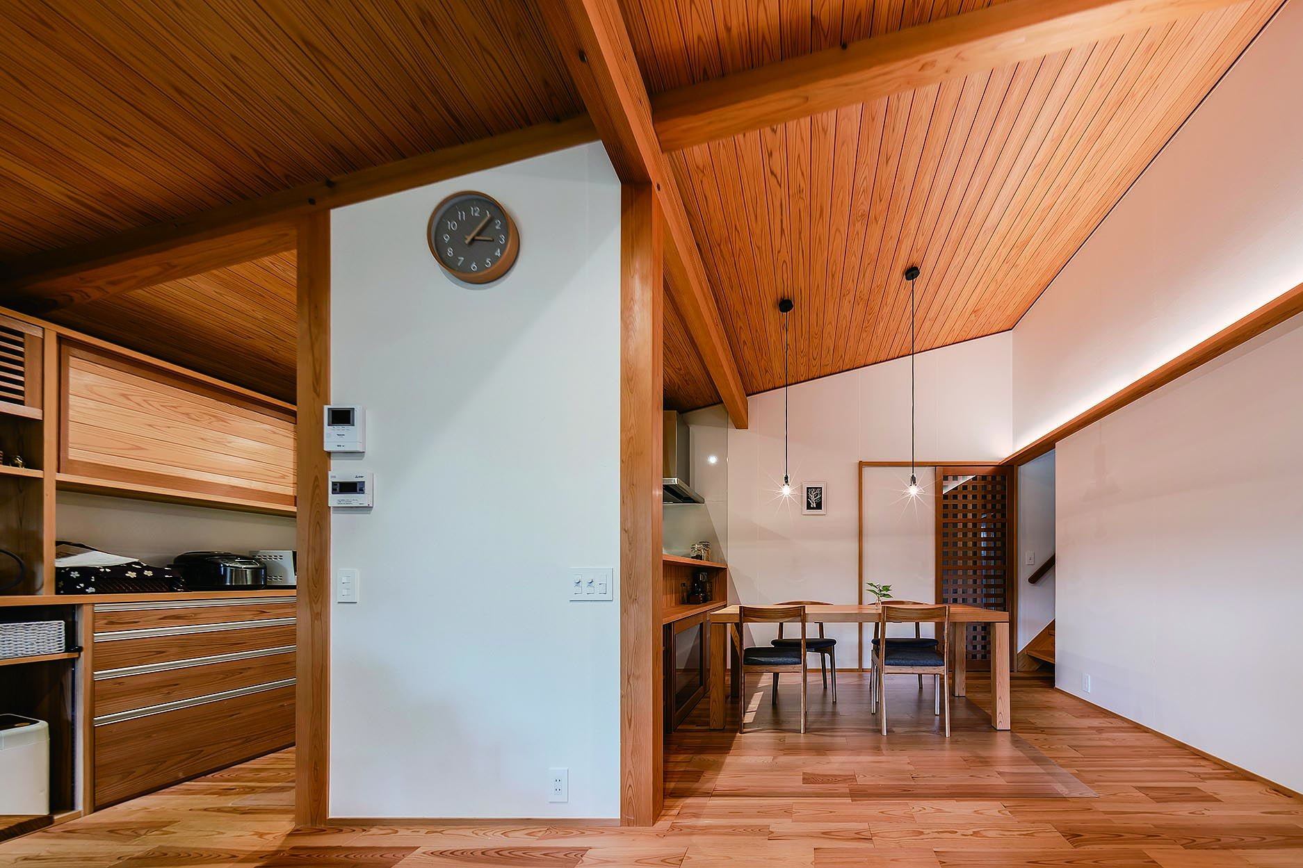 地元・内子へのUターンを機に、家づくりを決断したという施主さま。ご夫妻と2人のお子さん、そして夫のお父さま、妹さんの2世帯で暮らす住宅を検討された。計画地は、西渕工務店が展開する分譲地。竹林を望む緑豊かなロケーションに惹かれたという。「西渕さんなら、工業製品のような規格に縛られた家ではなく、特別感のある我が家を叶えてくれると感じました」と信頼を寄せ、計画が始まった。