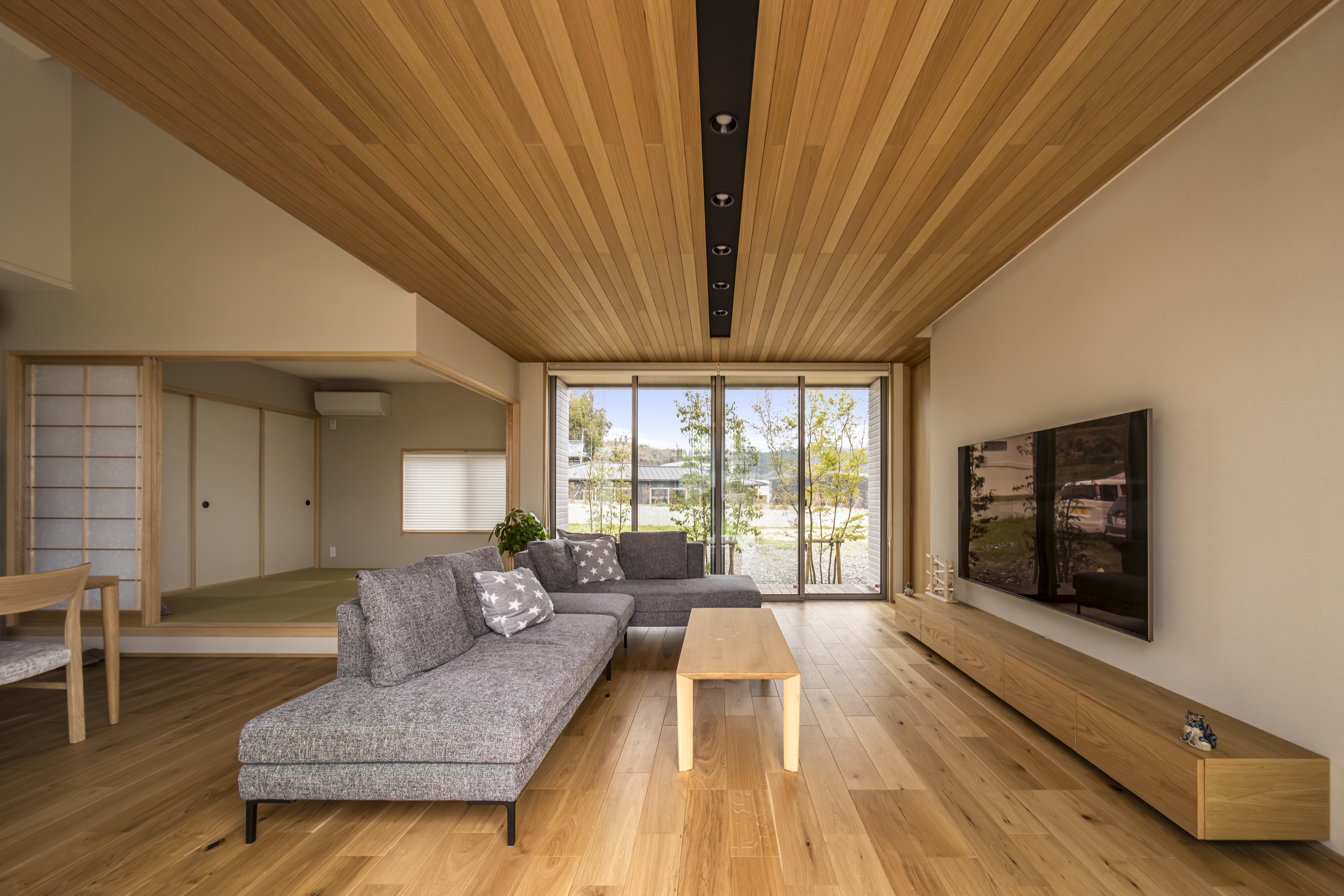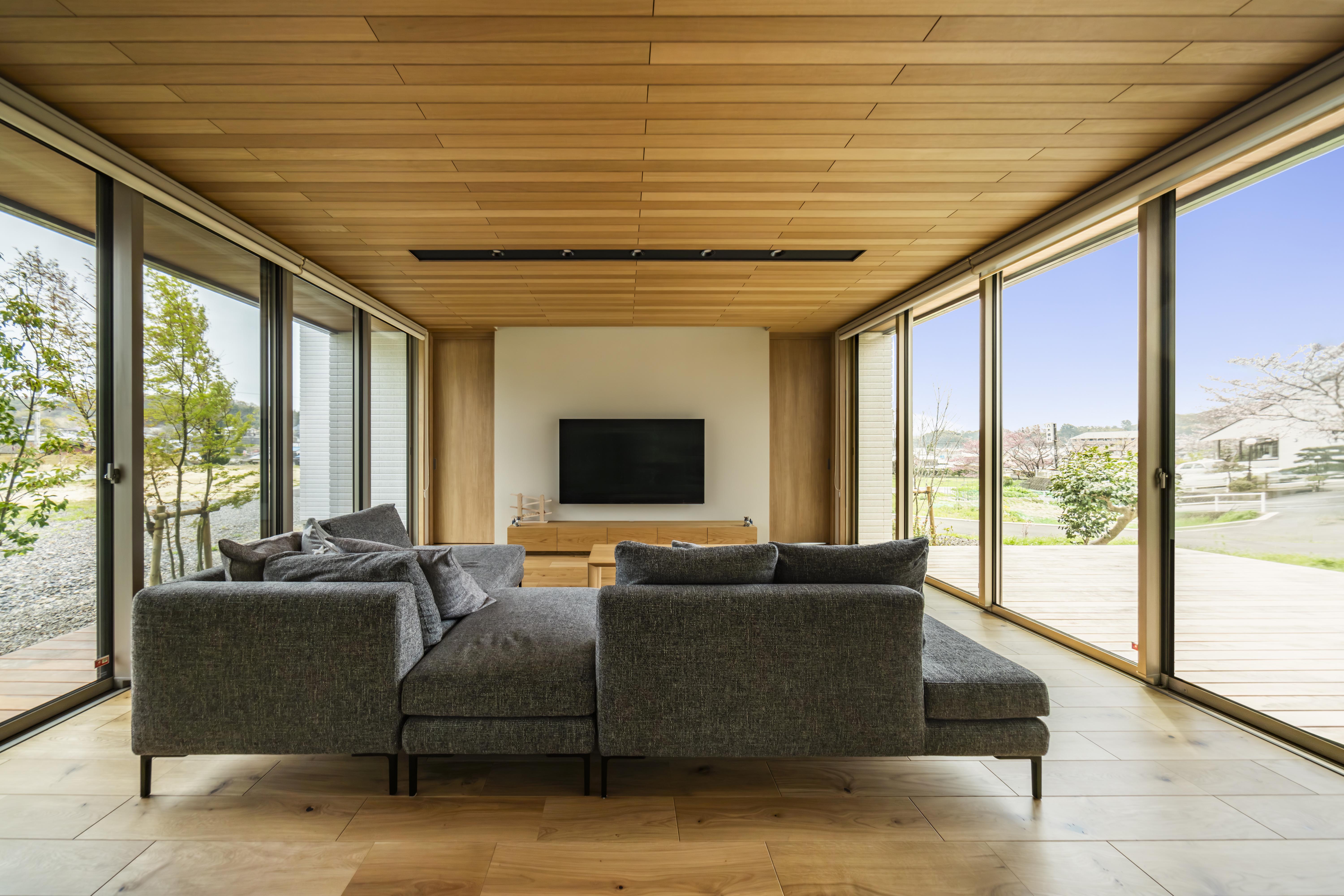 る。床や天井には木材をたっぷり使い、風合いを活かした空間もさらなる爽やかさを演出している。キッチンから寝室、水まわりと一周できる動線も綿密な計算によってつくられたもの。忙しい日常でも移りゆく季節を感じながら、ご褒美のような時間を味わっている。