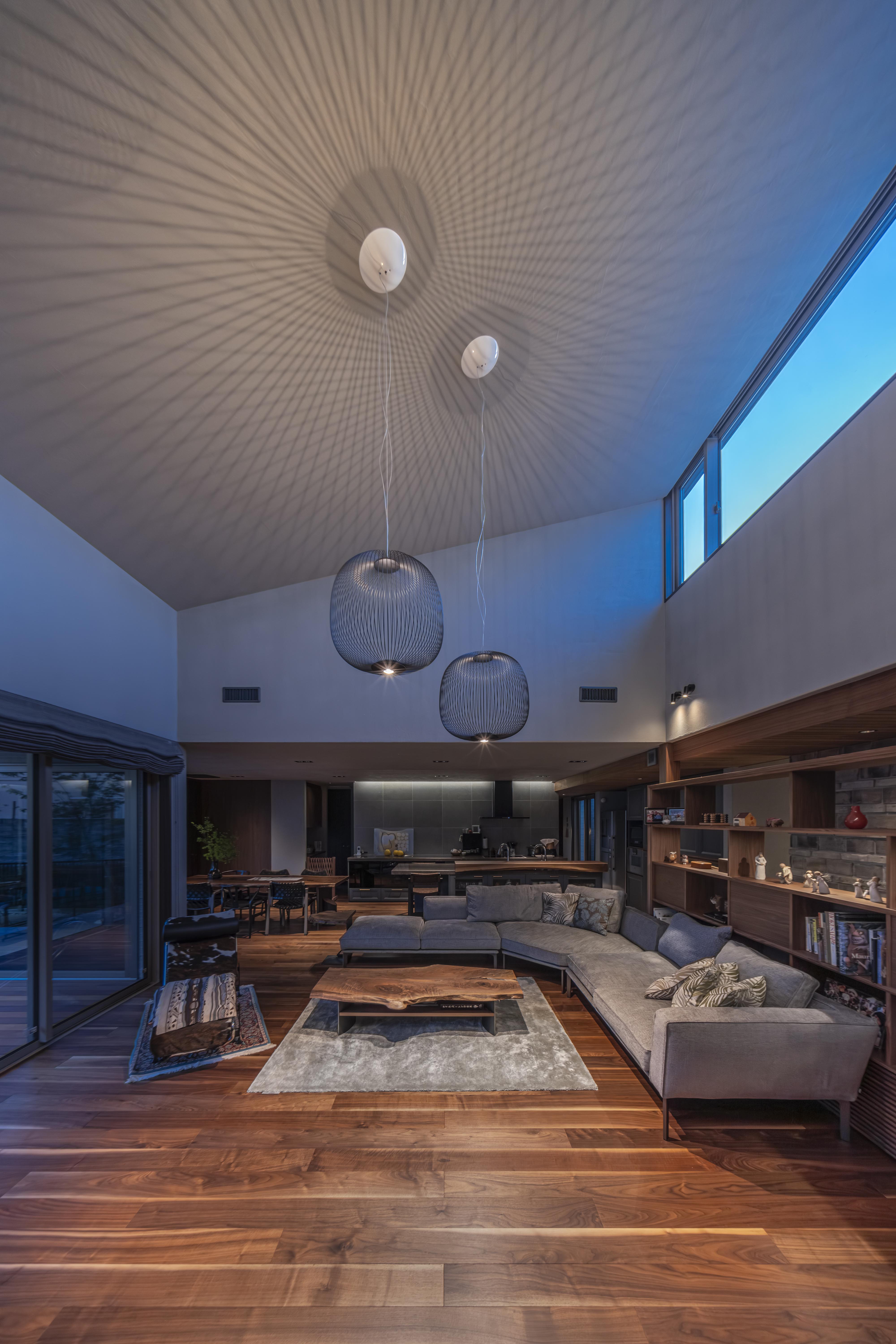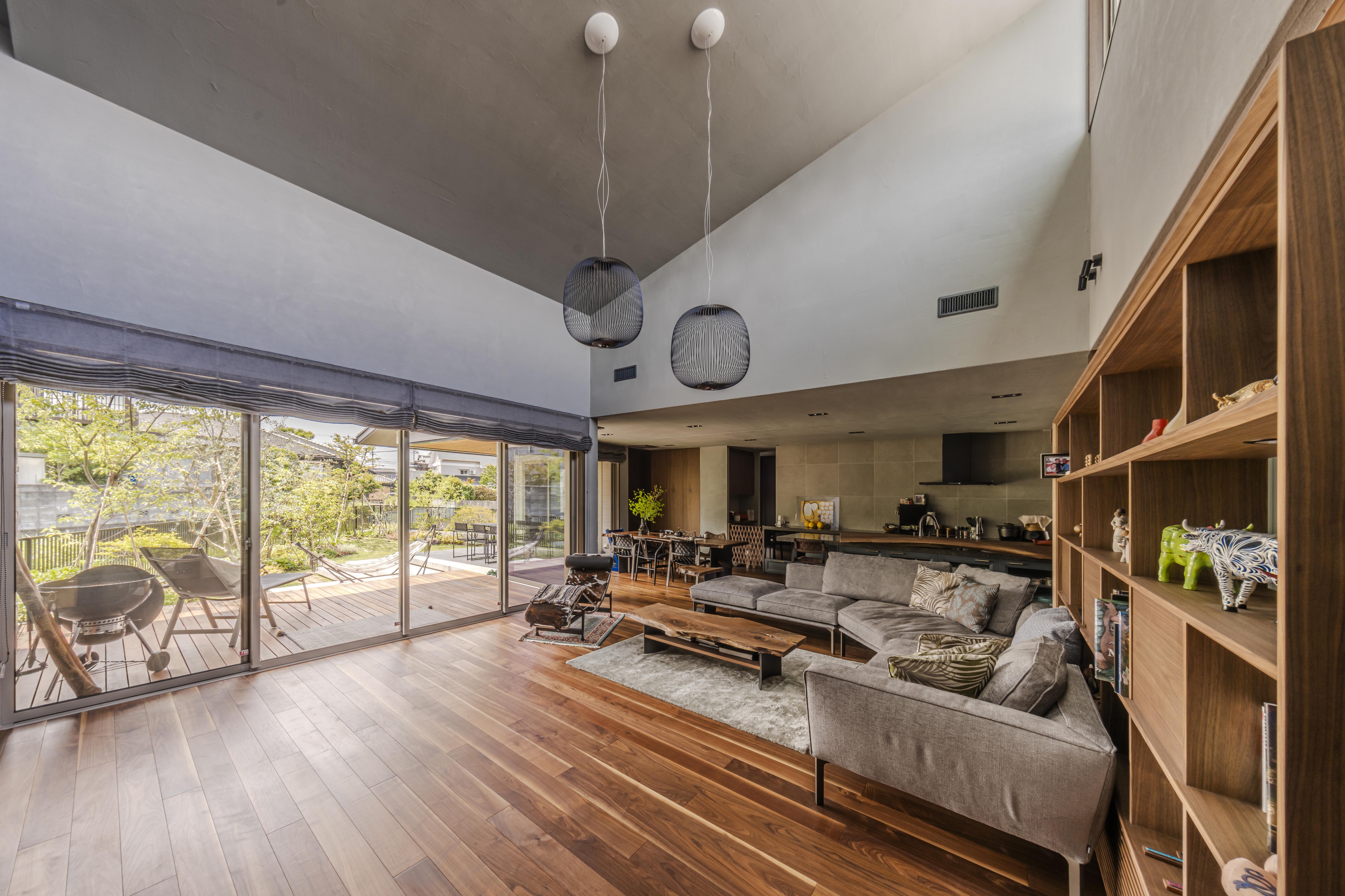 著名な建築家のフランク・ロイド・ライトは「外から中へ、中から外へと空間を連続させる」という言葉を残している。家づくりは敷地の形状や周辺環境になじむことが大切で、風や光、庭、景観までも邸内に取り入れるという考え方だ。その言葉を具現化したのが、この住まい。岡本さんが内外のつながりを感じさせるために、「ソトのウチ化、ウチのソト化」を意識して設計した。