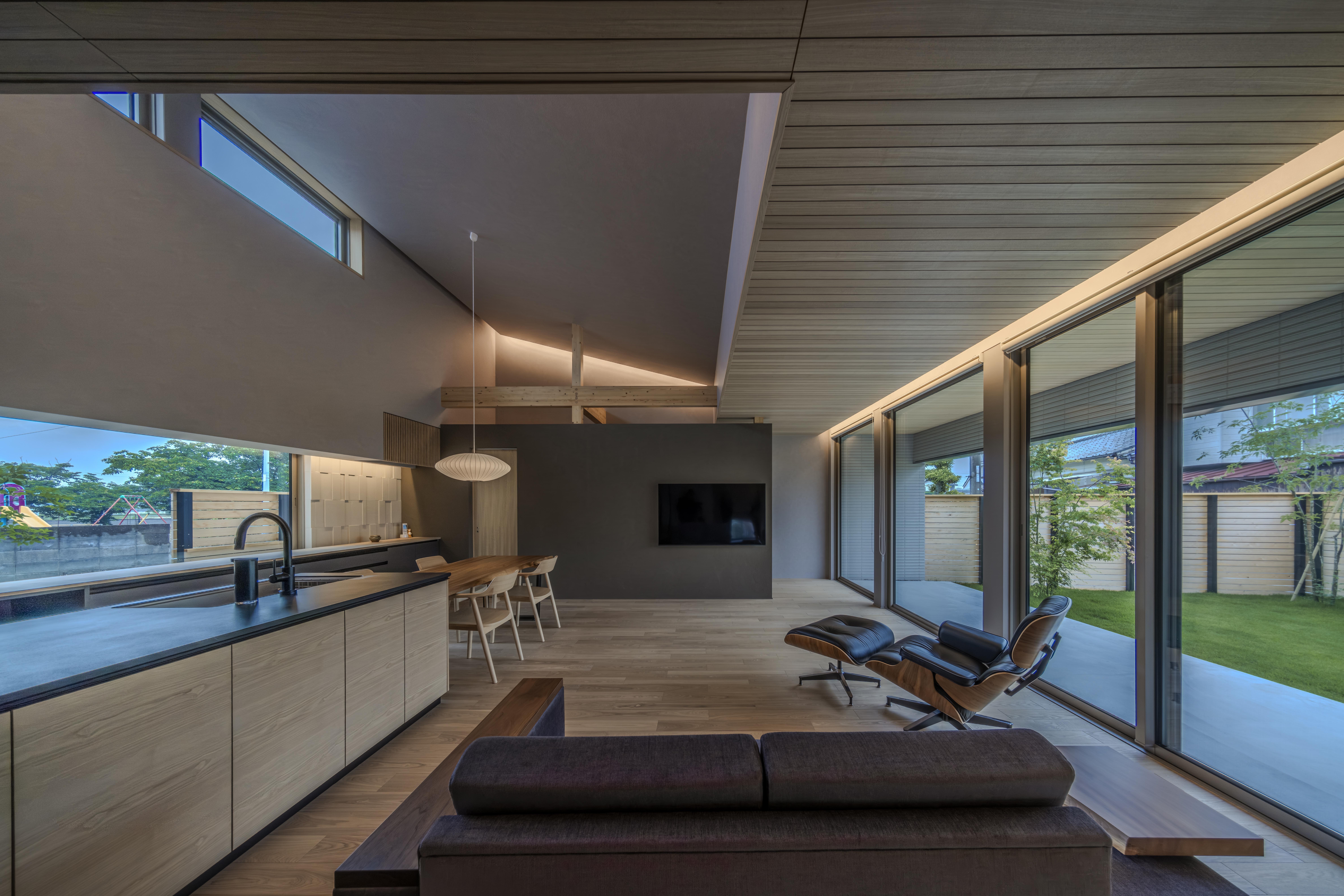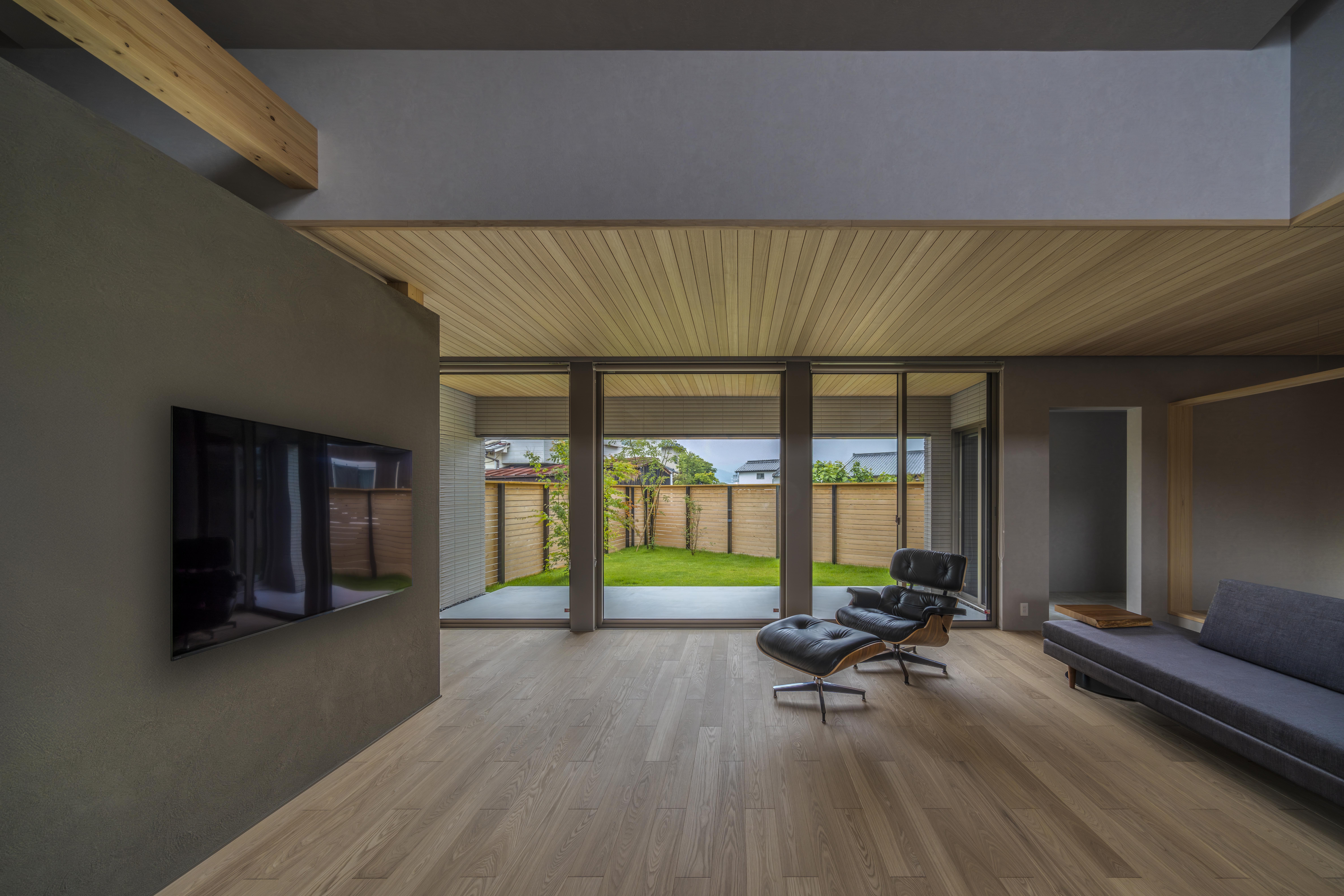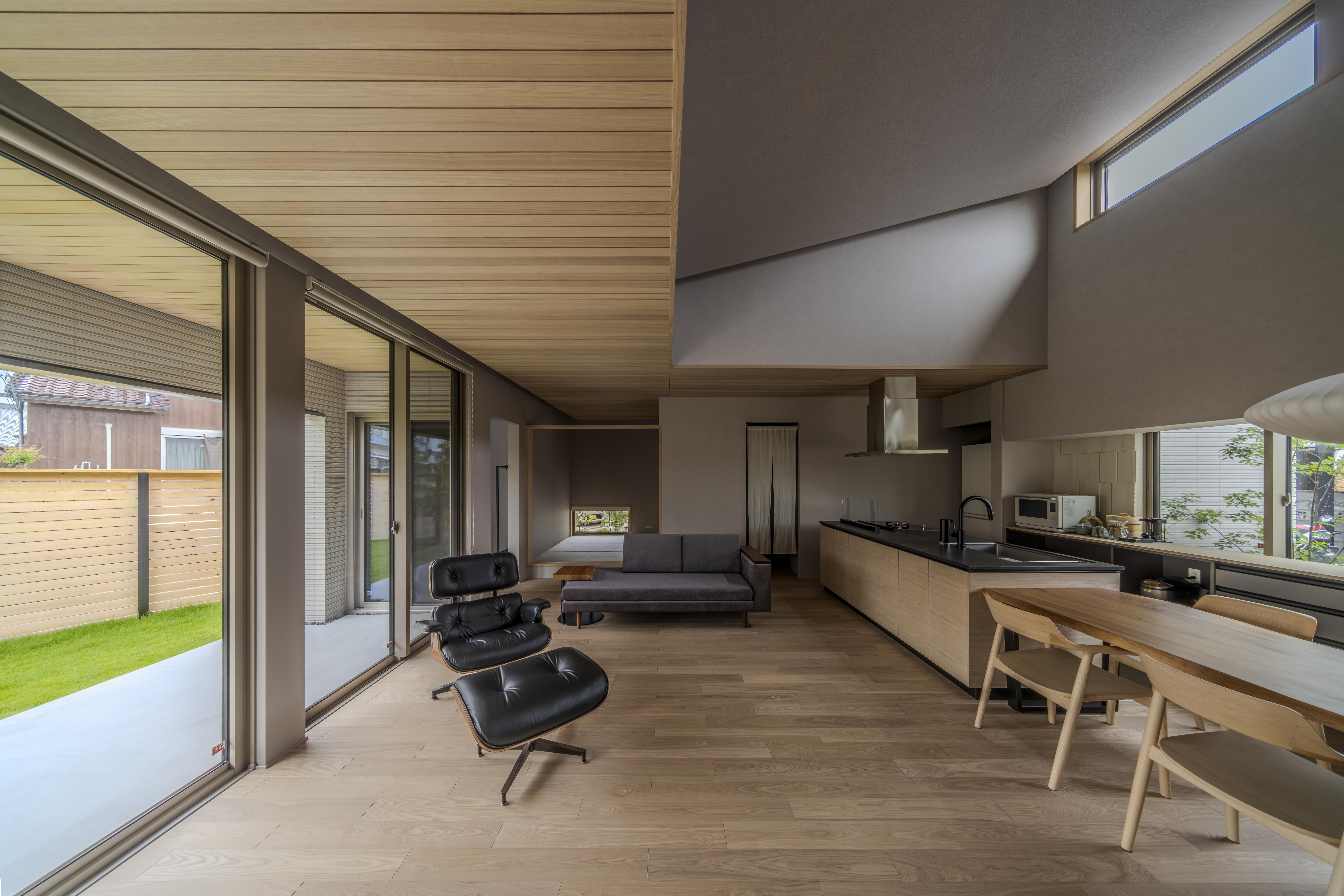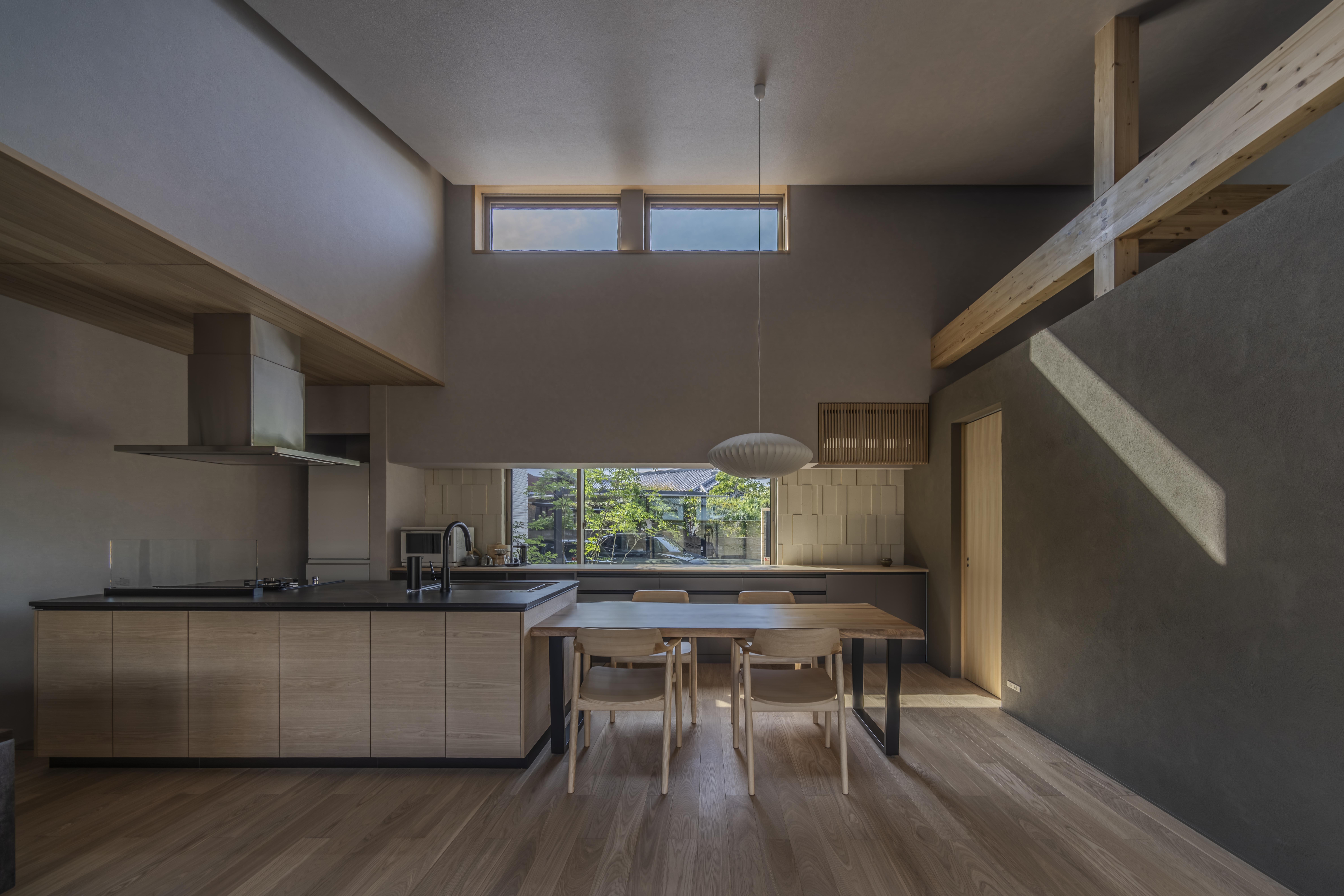 また、ご夫妻とお母さまが暮らす二世帯住宅のため、お母さまの居室は日当たりのよい南側に、ご夫妻の主寝室は北側に配置。お互いの生活スタイルを尊重しながらも自然と顔を合わせられる、心地よい距離感の間取りとなった。“開放感”と“こもり感”が共存する、静かで豊かな住まいである。
