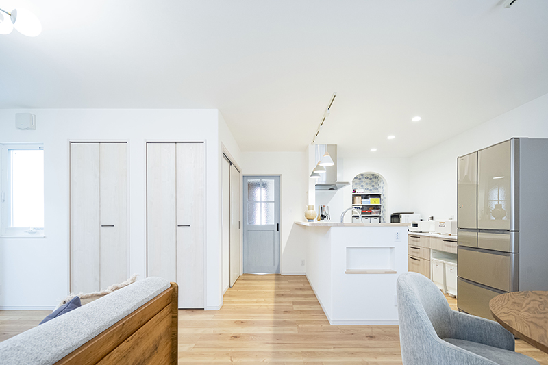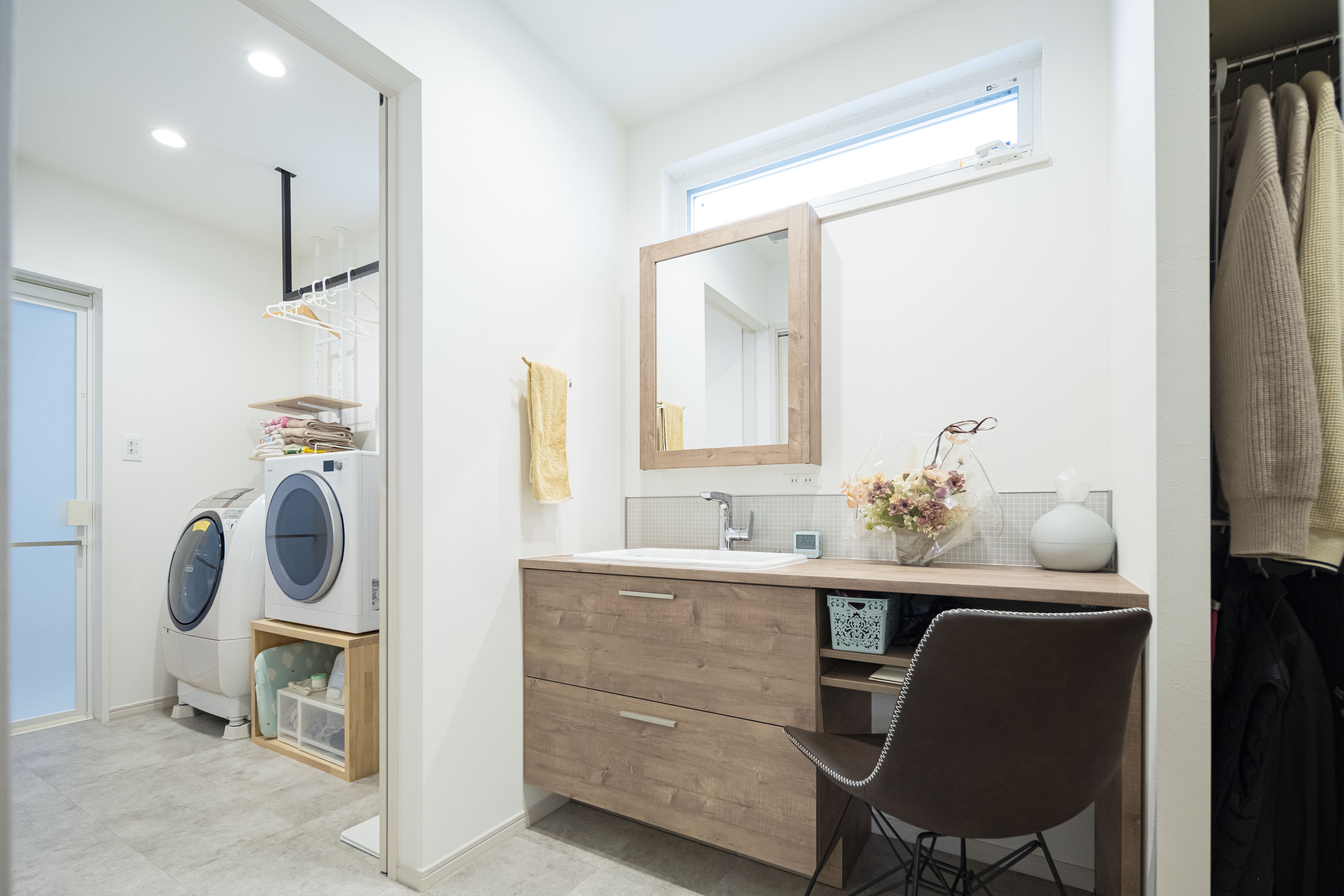 【施主様のこだわり】 日々の生活負担を減らす時短&効率化の家事導線を最優先にするとともに、子供たちの成長を見守る間取りや家族を守る耐震等級3+制振装置ミライエを採用しました。