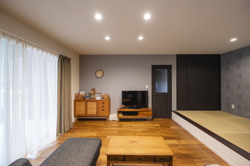 くつろぐ場所と生活する場所が程よい距離感でつながる平屋