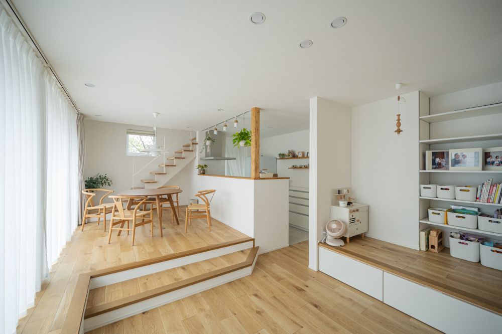 吹き抜け&回遊動線でつながるスキップフロアのある家