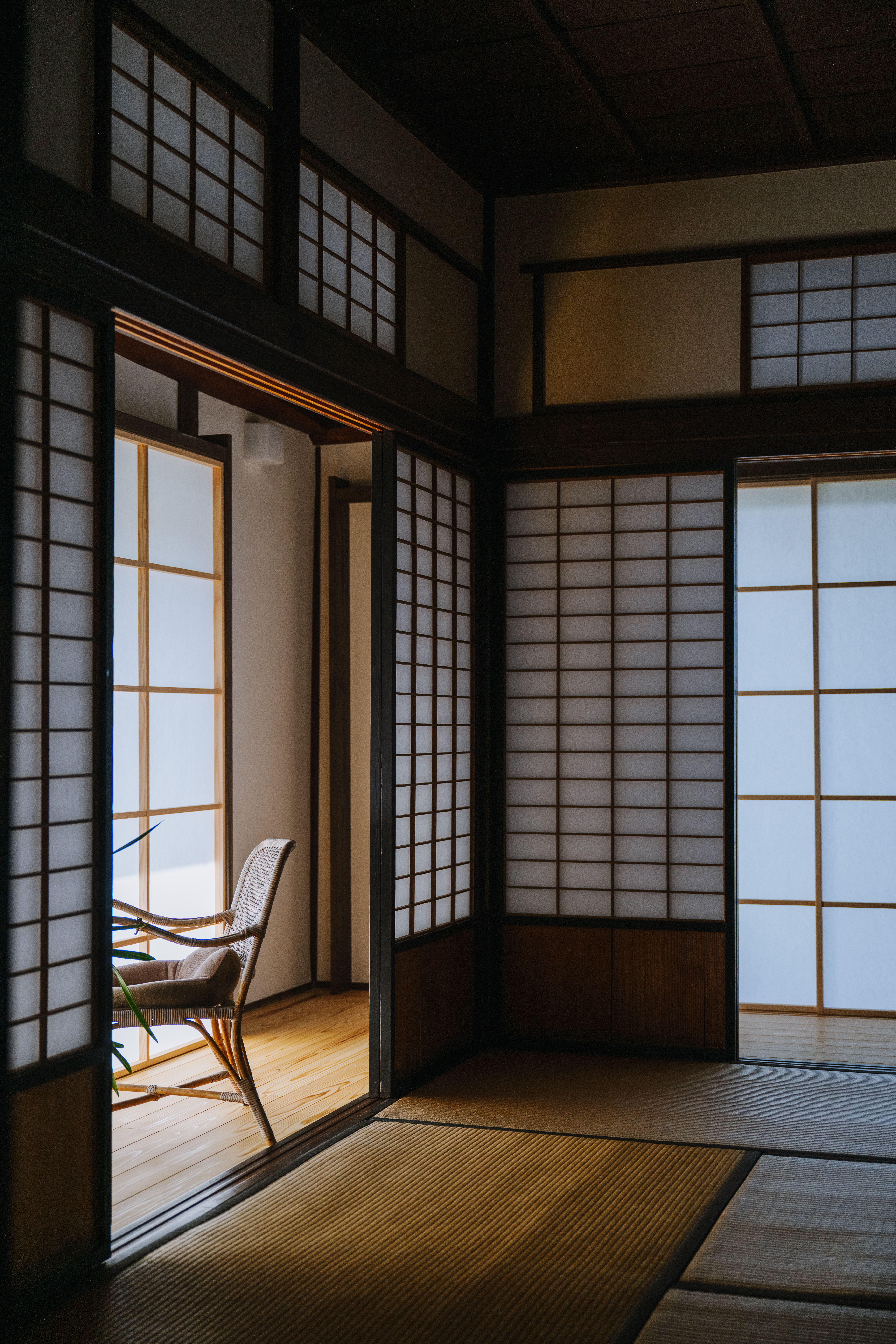 かつて養蚕が盛んだった大洲市。築100年を超える養蚕農家だったお母さまの家は、2階は物置のまま使っておらず、耐震性にも不安があったことから、娘さんが耐震改修を施したいと西渕工務店に相談しました。娘さんには一つの想いが。「県外で暮らす息子家族に帰る場所をつくってあげたい」…ゆくゆくは孫世帯も快適に過ごせるよう、2階を有効活用しながら、現代の暮らしに適う住まいへとリ ノベーションすることを決意しました。伝統工法と自然素材の家づくりに取り組む同社。これまでいくつもの古民家再生を成し遂げてきた匠たちが、半分眠っていた住まいに新たな息吹を吹き込みました。 2階の梁をあらわしにして吹き抜けにすることで、日が差しにくかった1階全体を明るく、心地良い空間に。立派な梁や建具など残せるのもは残し、新しく取り入れたものと見事に調和しています。