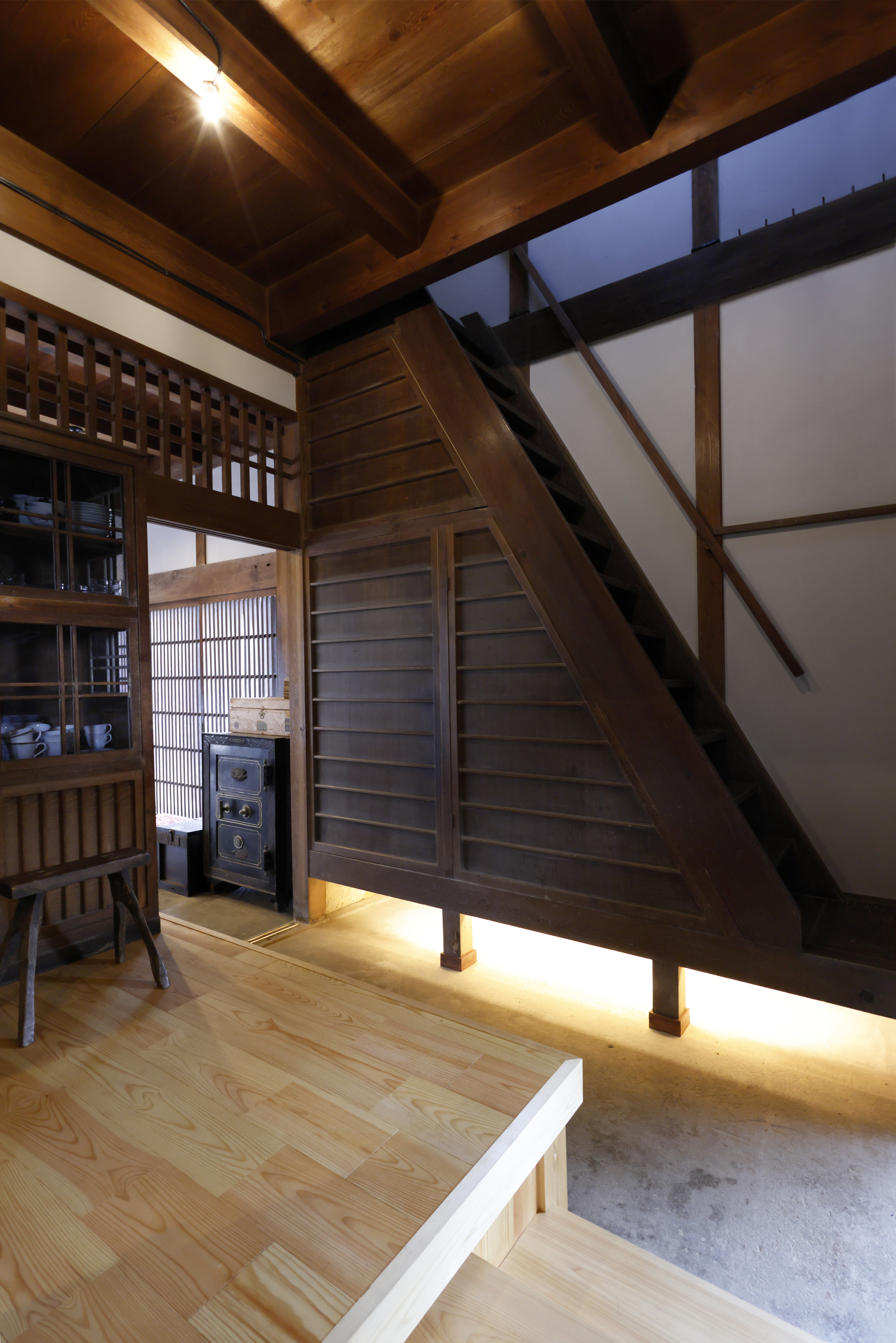 築120年の旧商家は、重厚感のある建物ではありましたが、道路側に傾いていました。家を受け継いだ施主さまは、安全面の不安から建て替えや解体を検討しながらも、「できるなら残したい」という想いで、古民家再生のノウハウと実績を持つクラスに相談。良質な材料を用いた建築美あふれるつくりと、住み継いできた人たちが守り続けてきたことが分かる良好な状態。伝統工法に精通した構造設計士による建物の調査の結果、現行の建築基準法を満たす強度があることが分かりました。それらを踏まえ、クラスは既存の建物を最大限に活かす形でのリノベーションを目指すことに。伝統工法の技術を応用した方法で傾きを修復し、耐震補強と断熱施工を施しました。